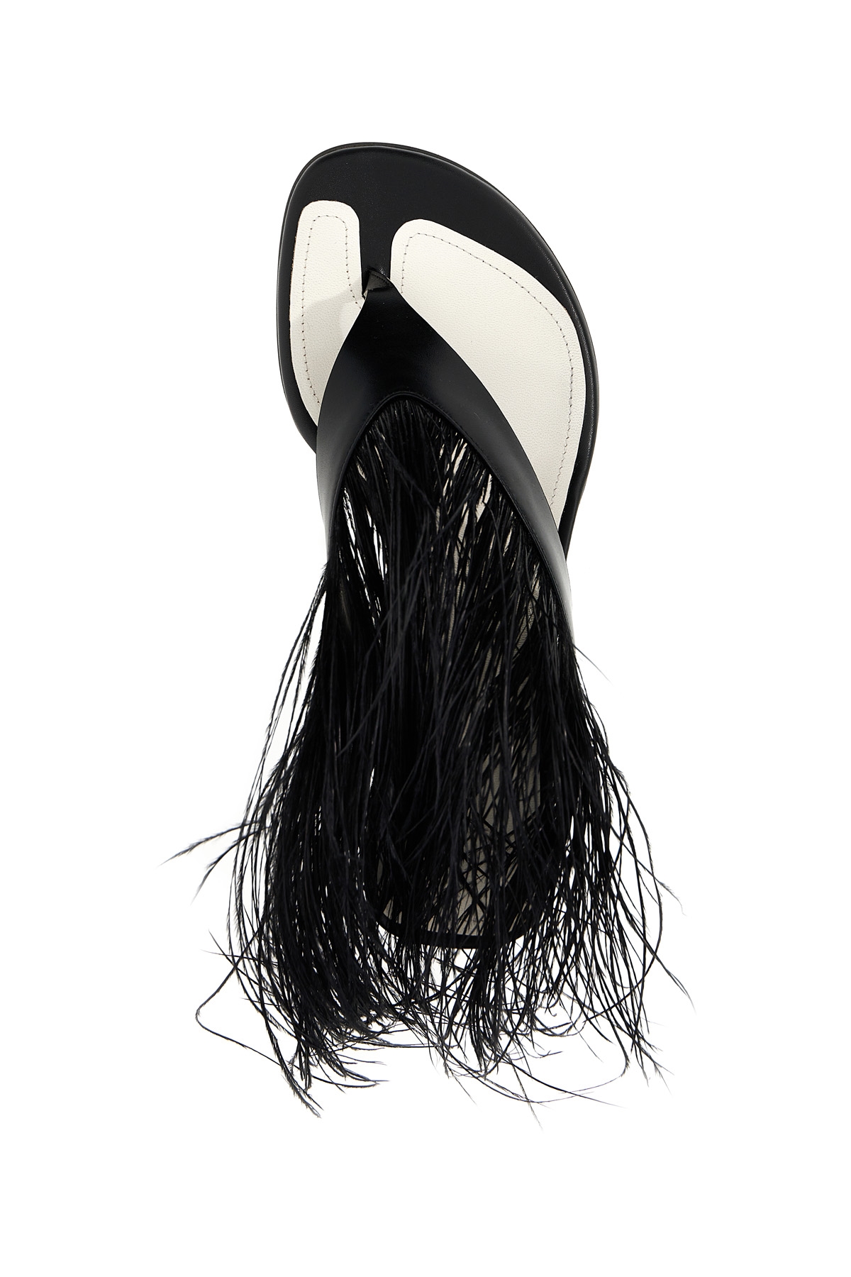 Talon swing' leather sandals featuring thong style embellished with tone-on-tone feathers.