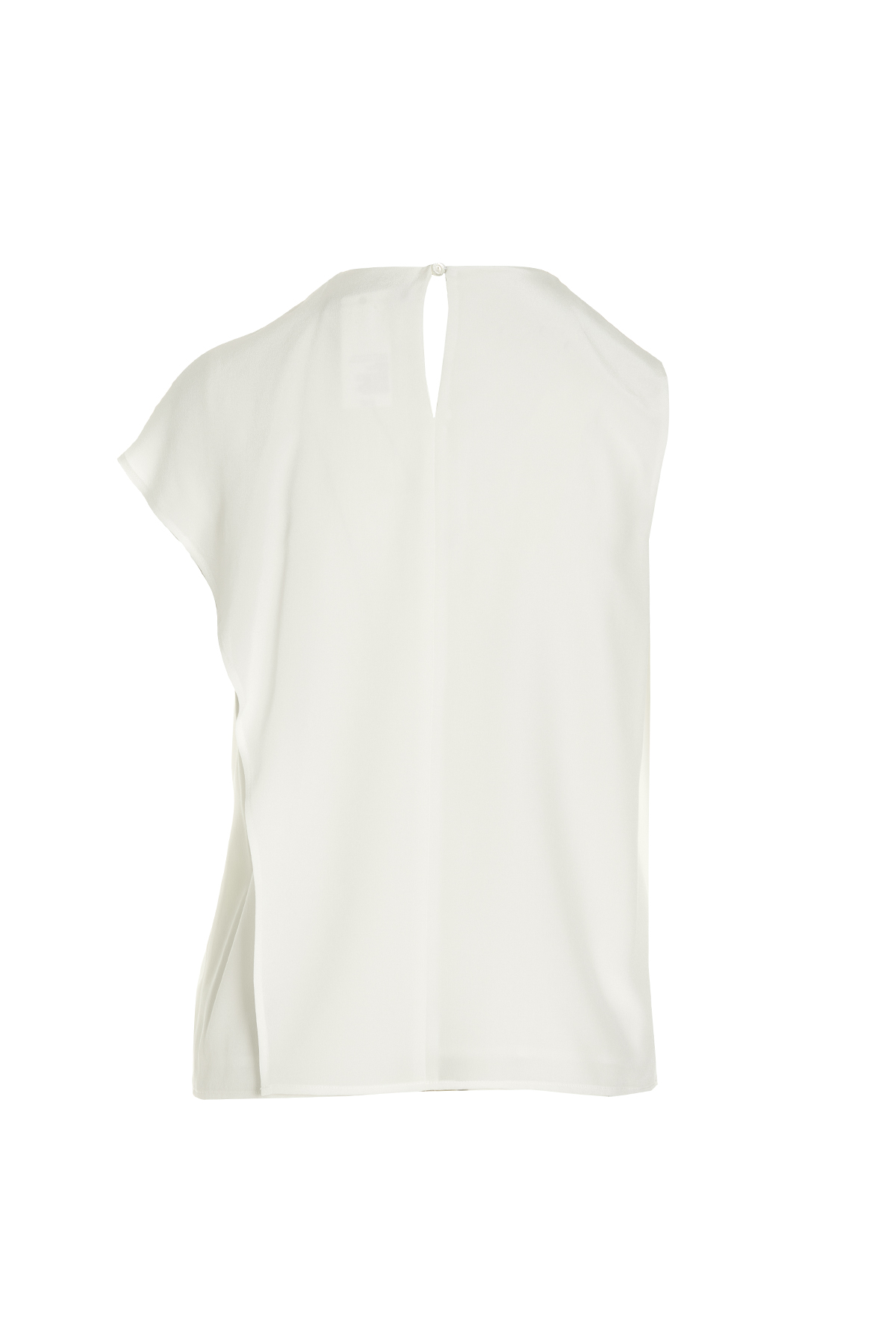 Cashmere' crepe de chine silk top with crewneck, asymmetric draping and butterfly sleeves.