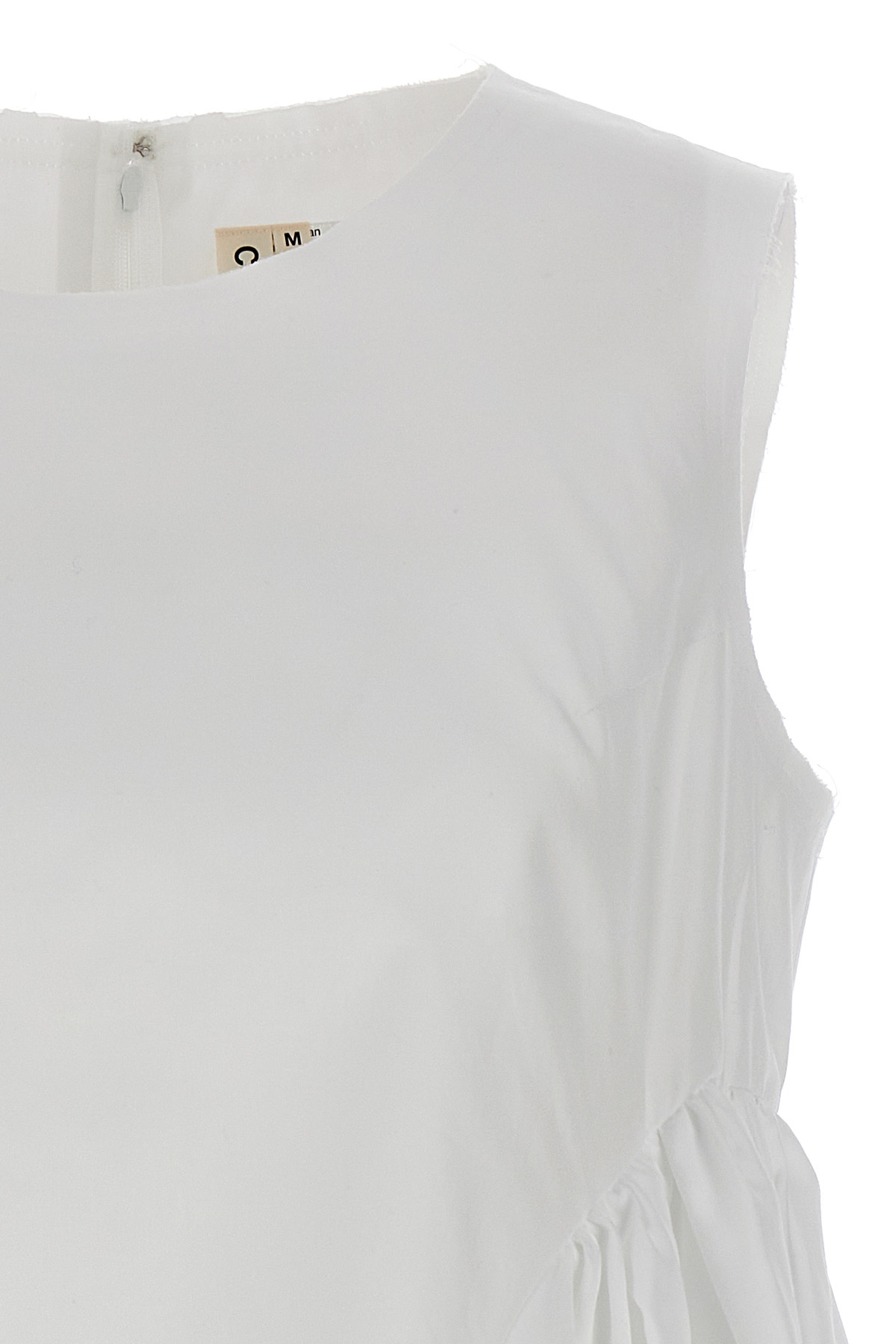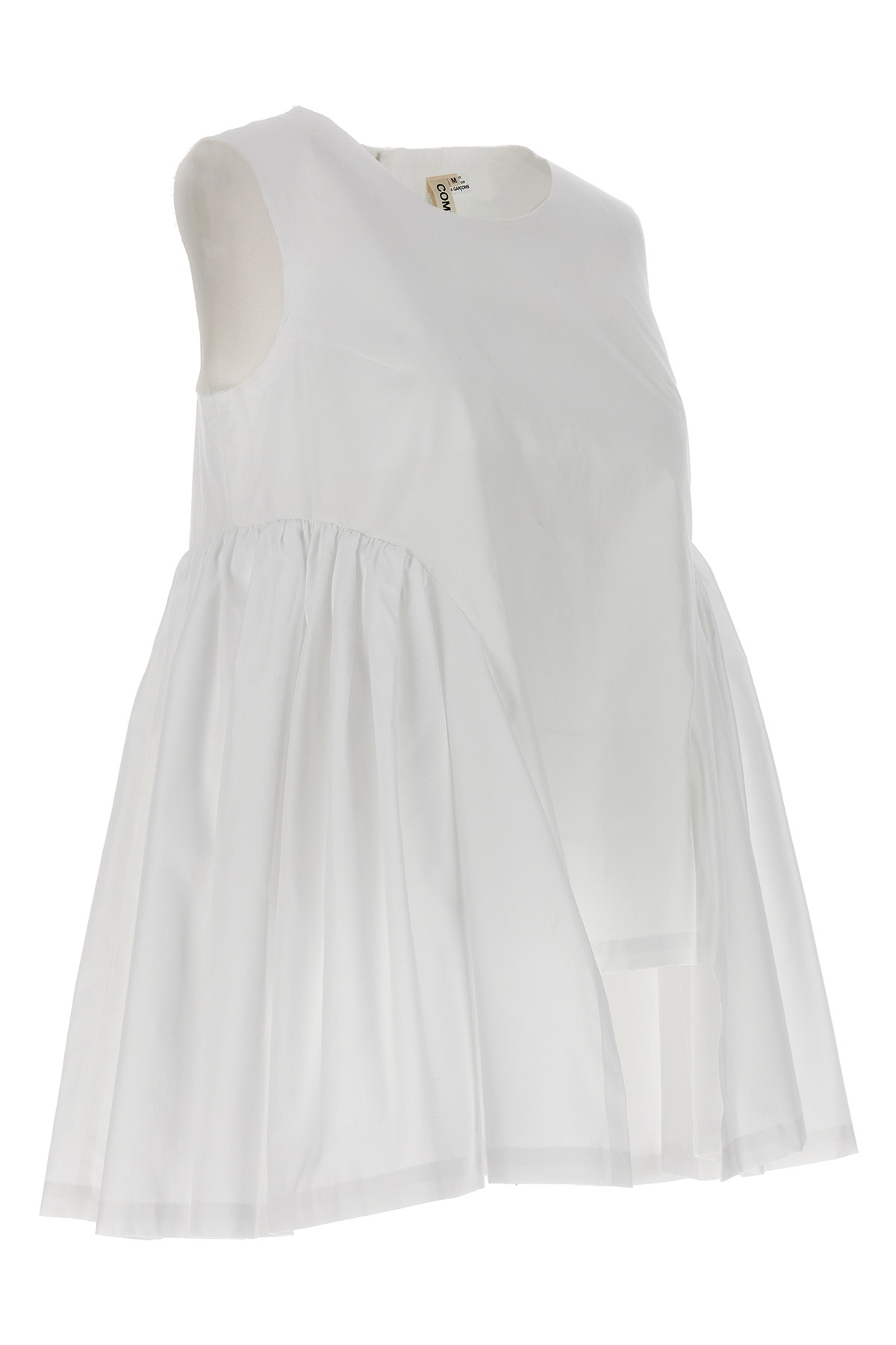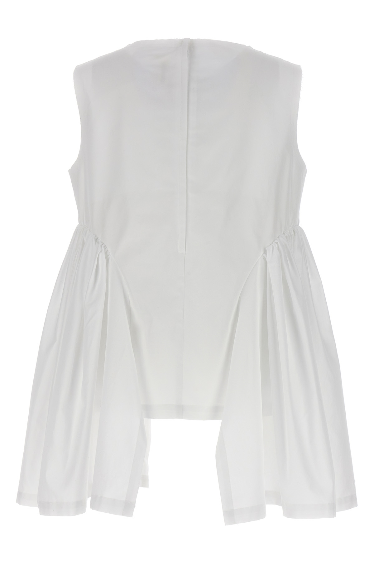 Cotton top with pleated inserts on the sides, crewneck, a back zip closure.