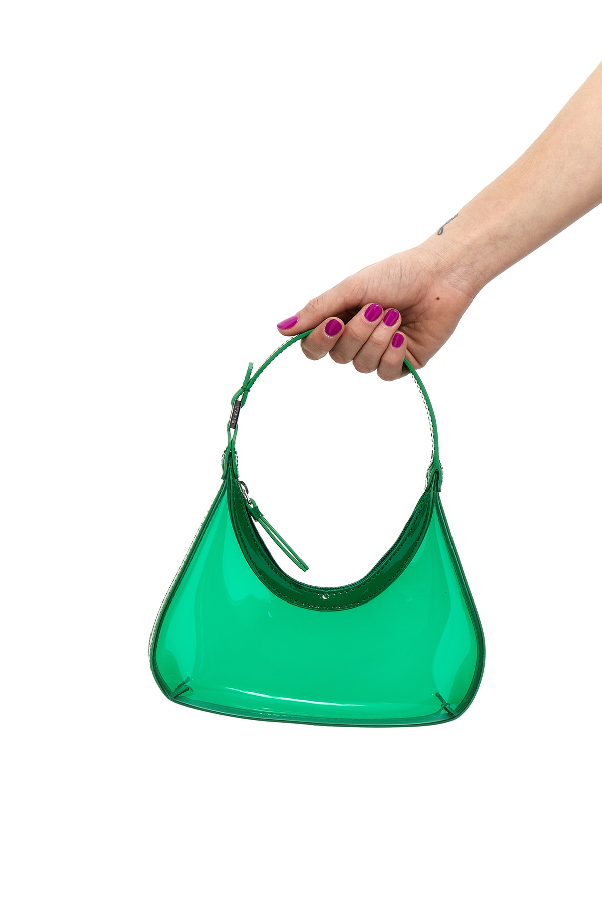 Baby Amber Clover' PVC and leather handbag with zip closure and an engraved logo buckle.
