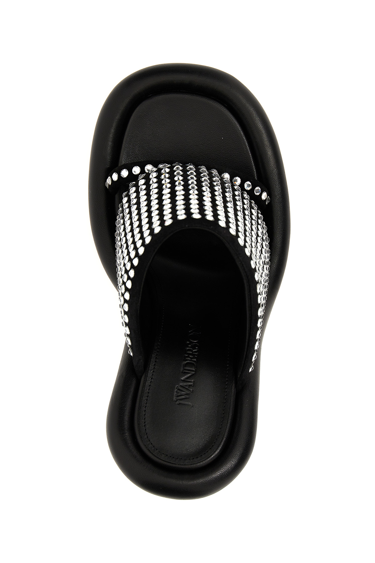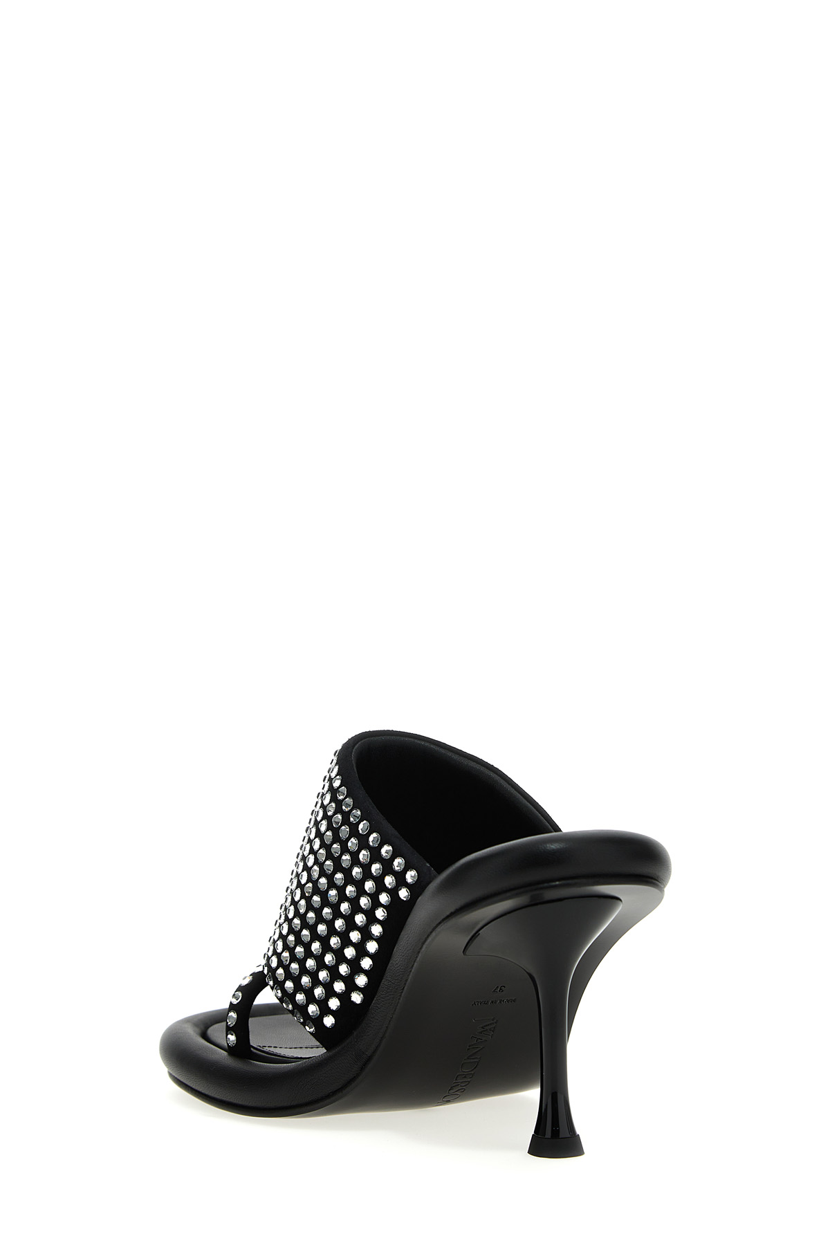 Bumber crystal' mules with sequined band, stilett heels.
