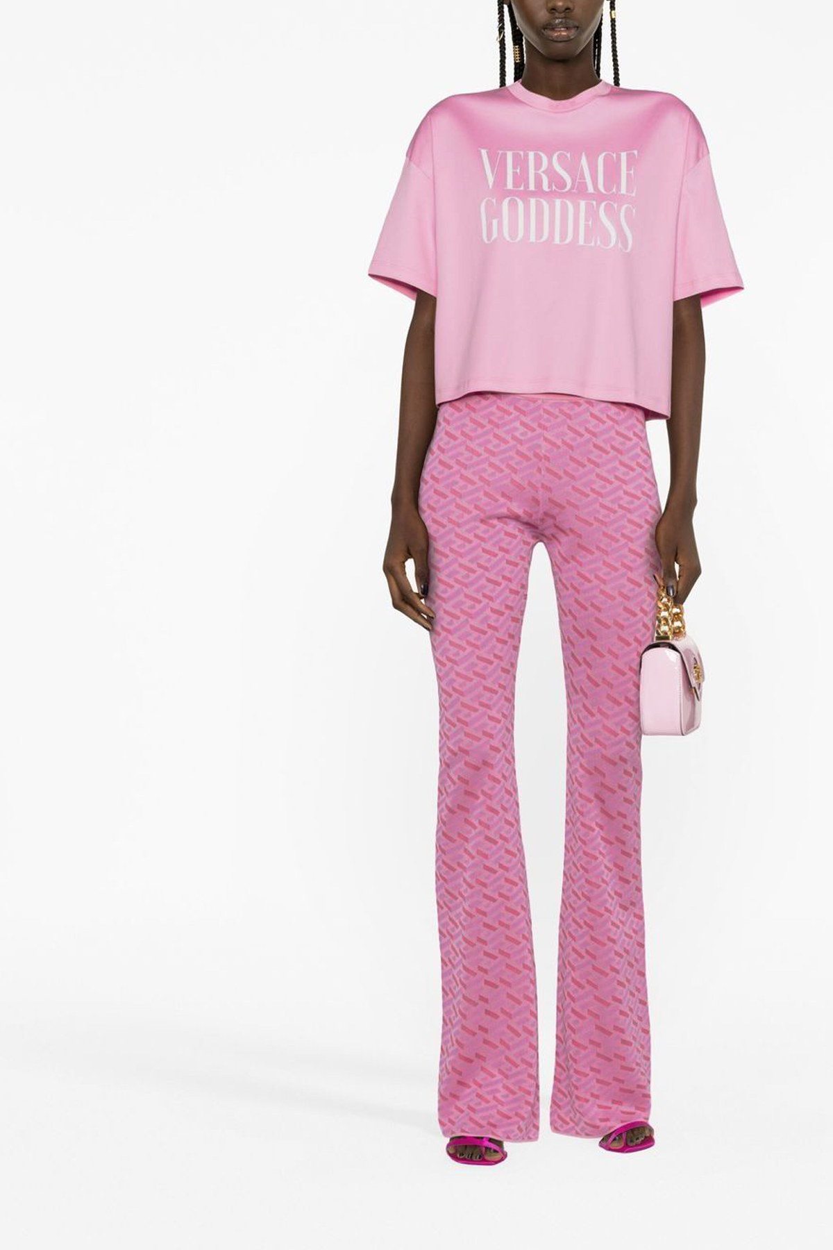 'La Greca' knitted pants with elastic waistband, flared leg.