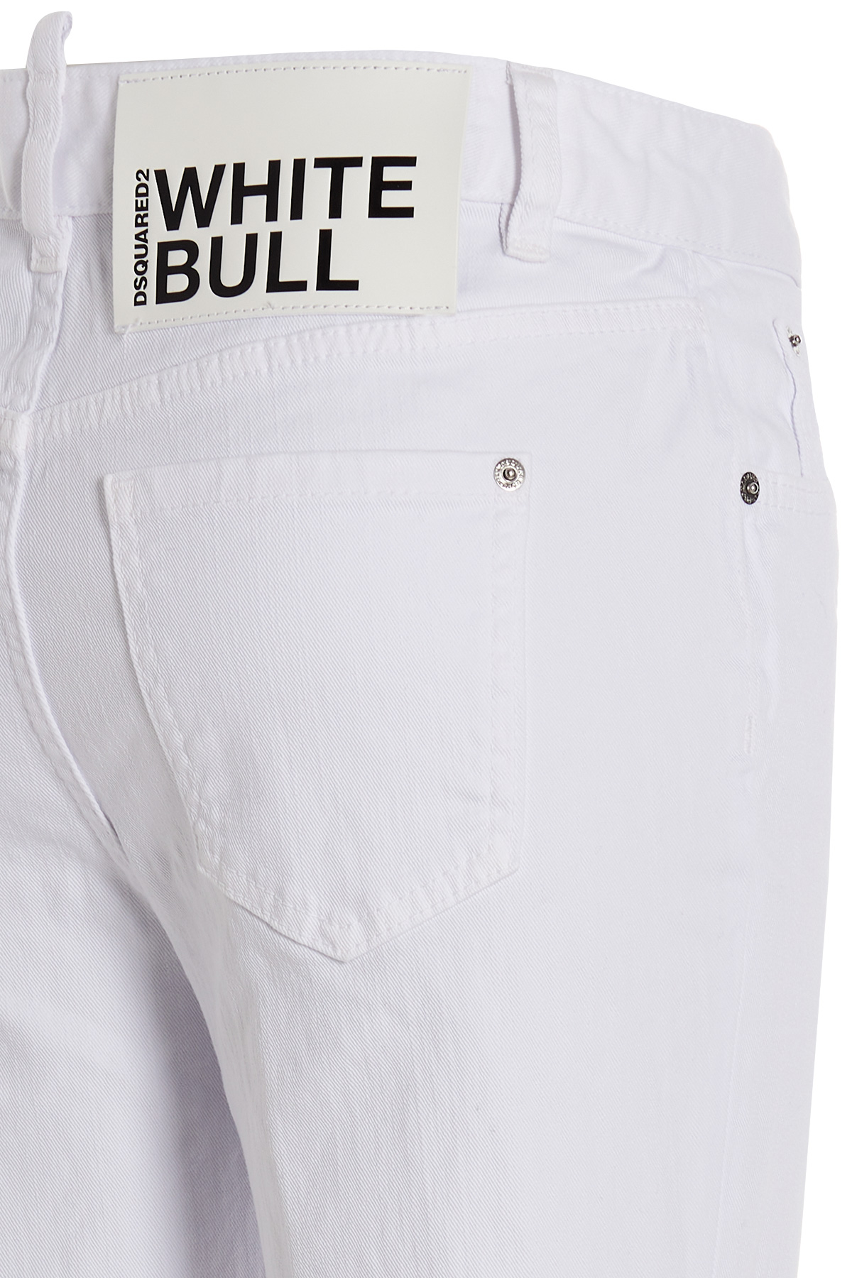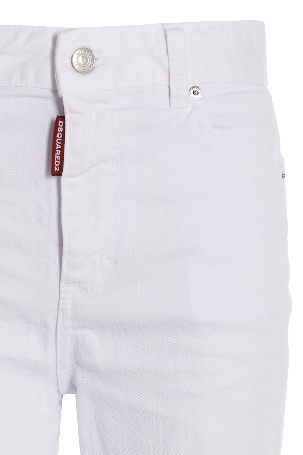 'Super Flared Cropped' cotton denim jeans with zip and button closure, five pockets, leather logo tag, flared leg.