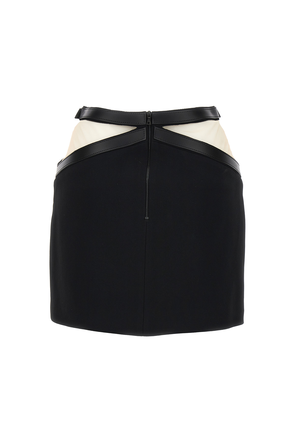 Cross Waist Band Net Insert' viscose blend skirt with leather details, back zip and hook closure, contrast mesh fabric details.