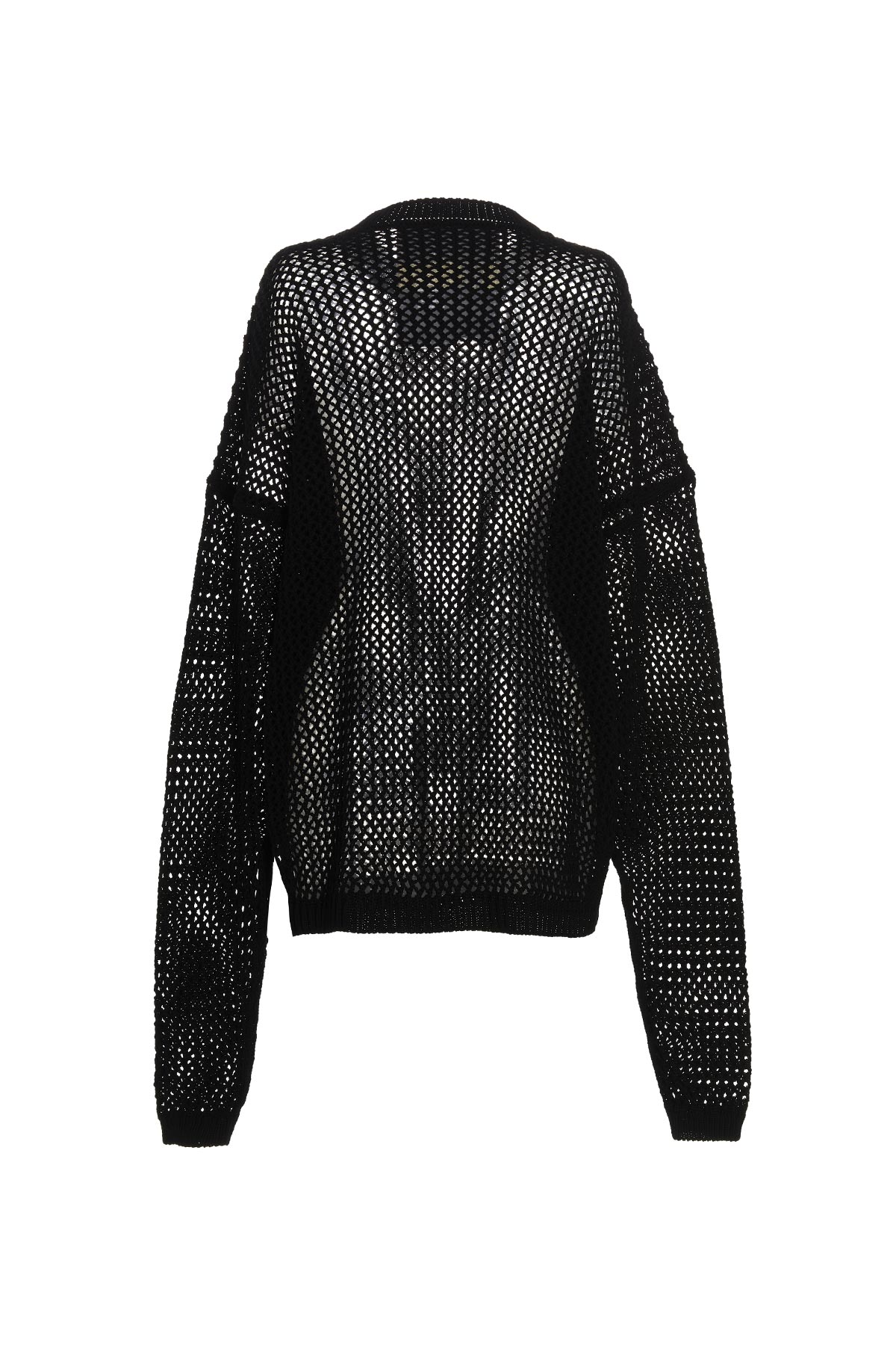 Bio Cable' seethrough cotton crewneck dress with extra long cuffed sleeves.