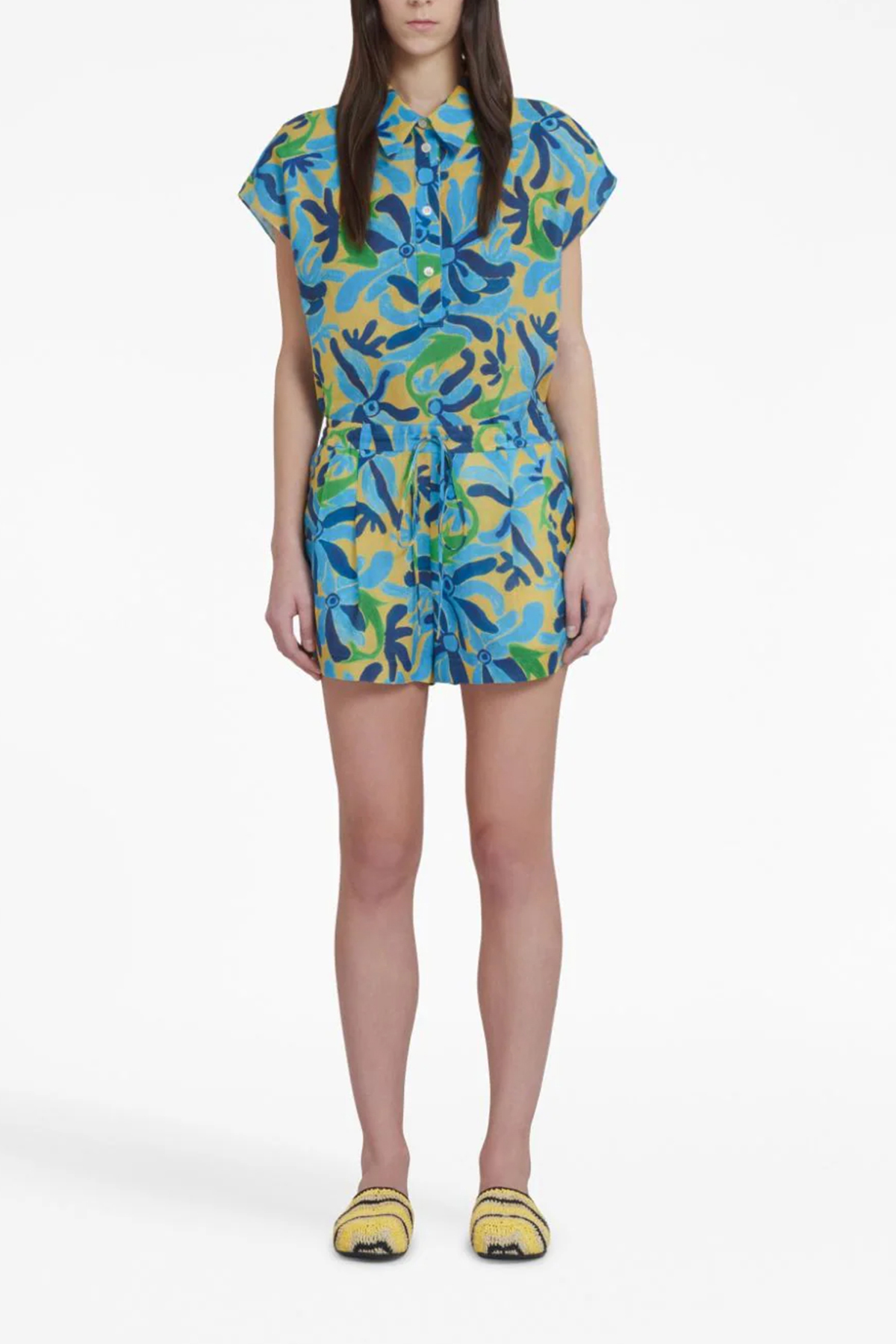 No Vacancy Inn' High Summer capsule linen and viscose shorts with all-over print, elastic and drawstring at the waist, pockets.