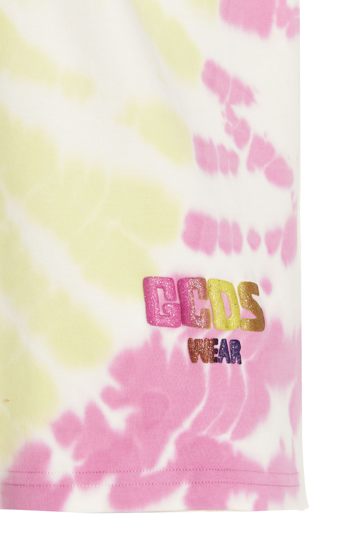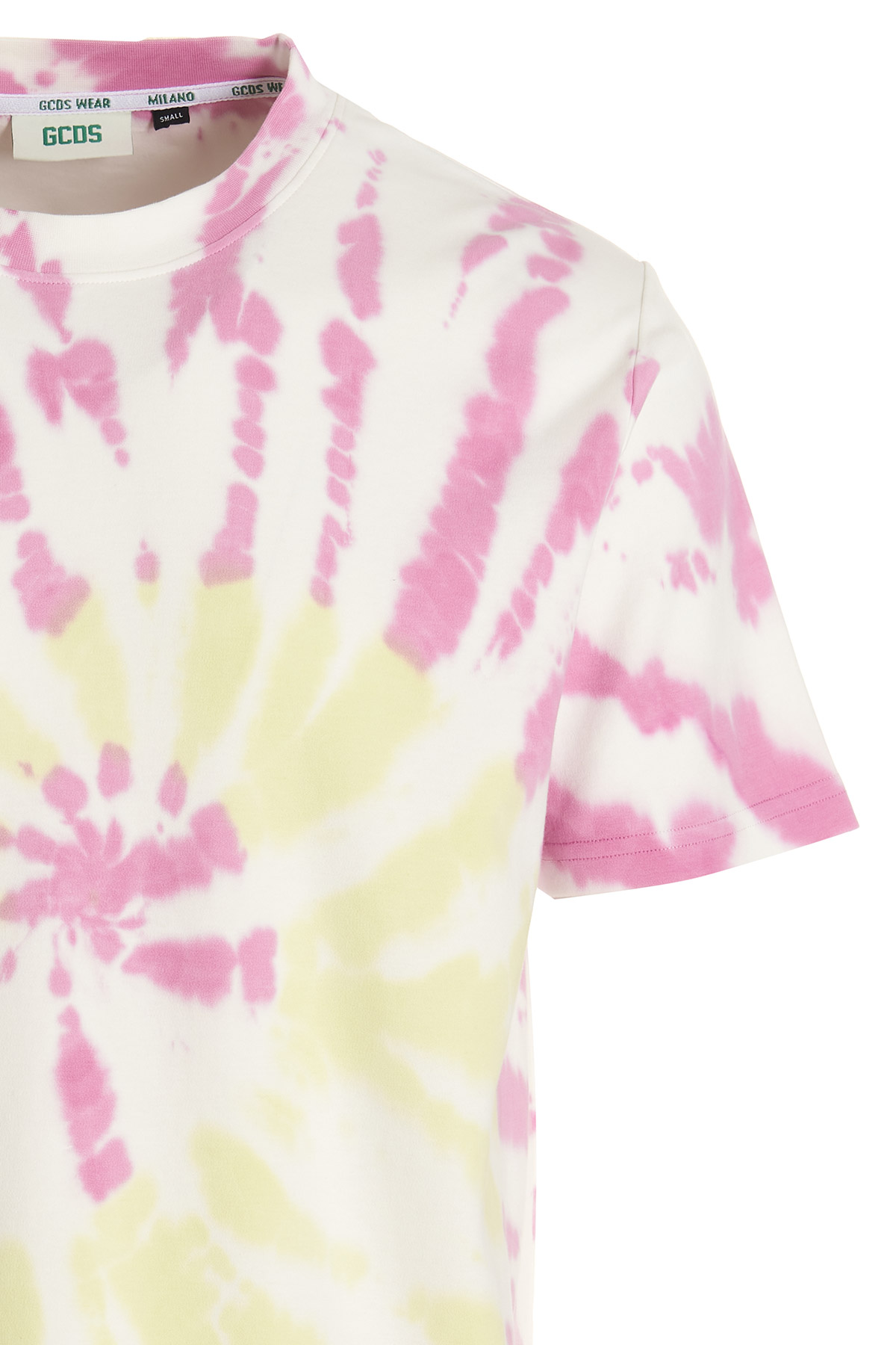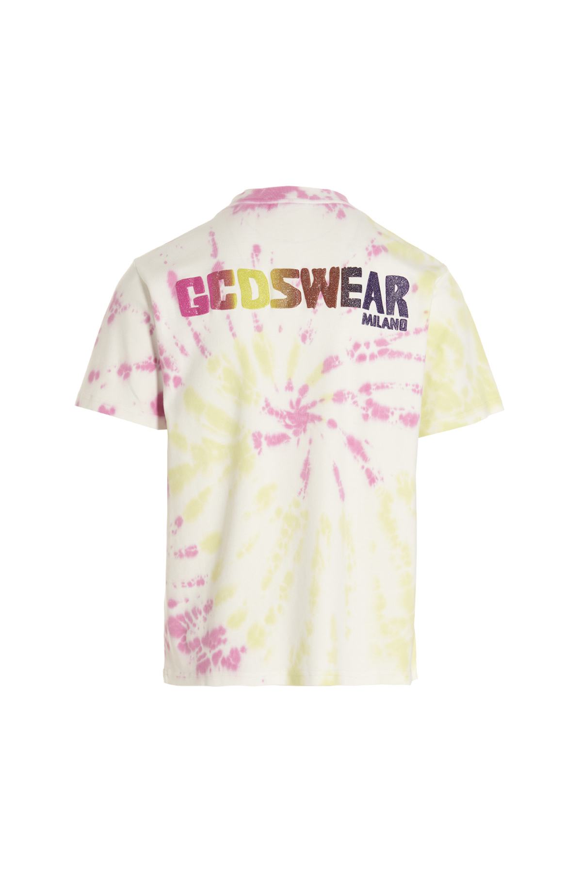 GCDS Tie Dye' cotton tie-dye t-shirt with front and back logo print, a crewneck, and short sleeves.
