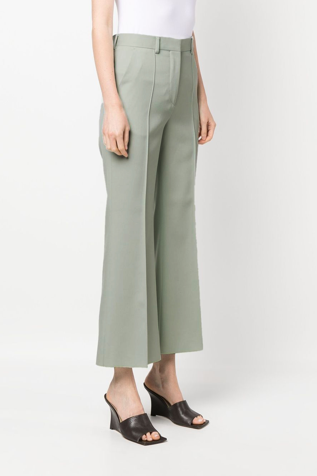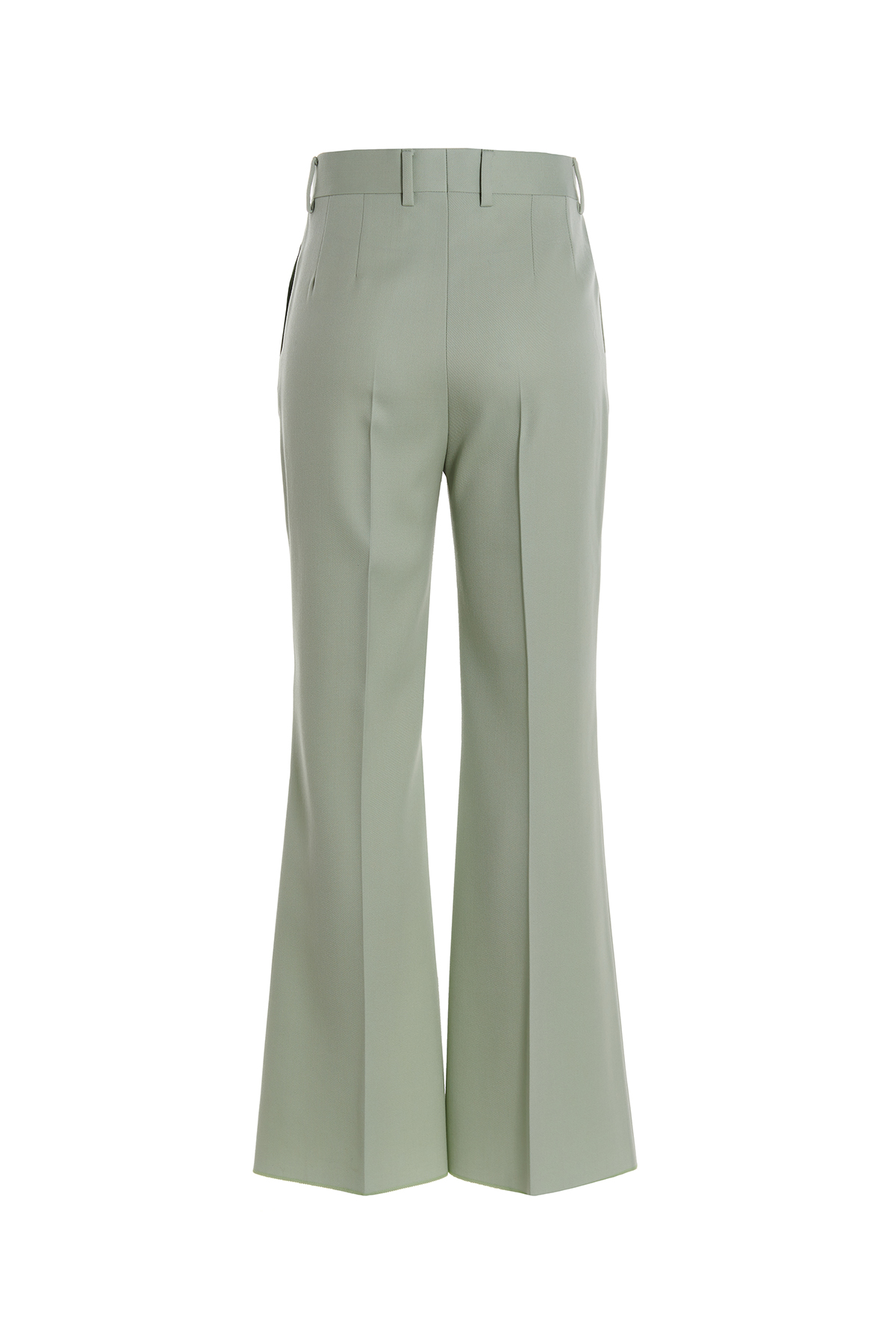 'Flared Tailored' wool pants with zip, hook and button closure, pockets, wide leg with central crease.