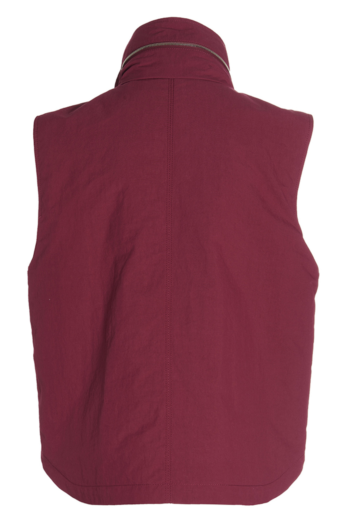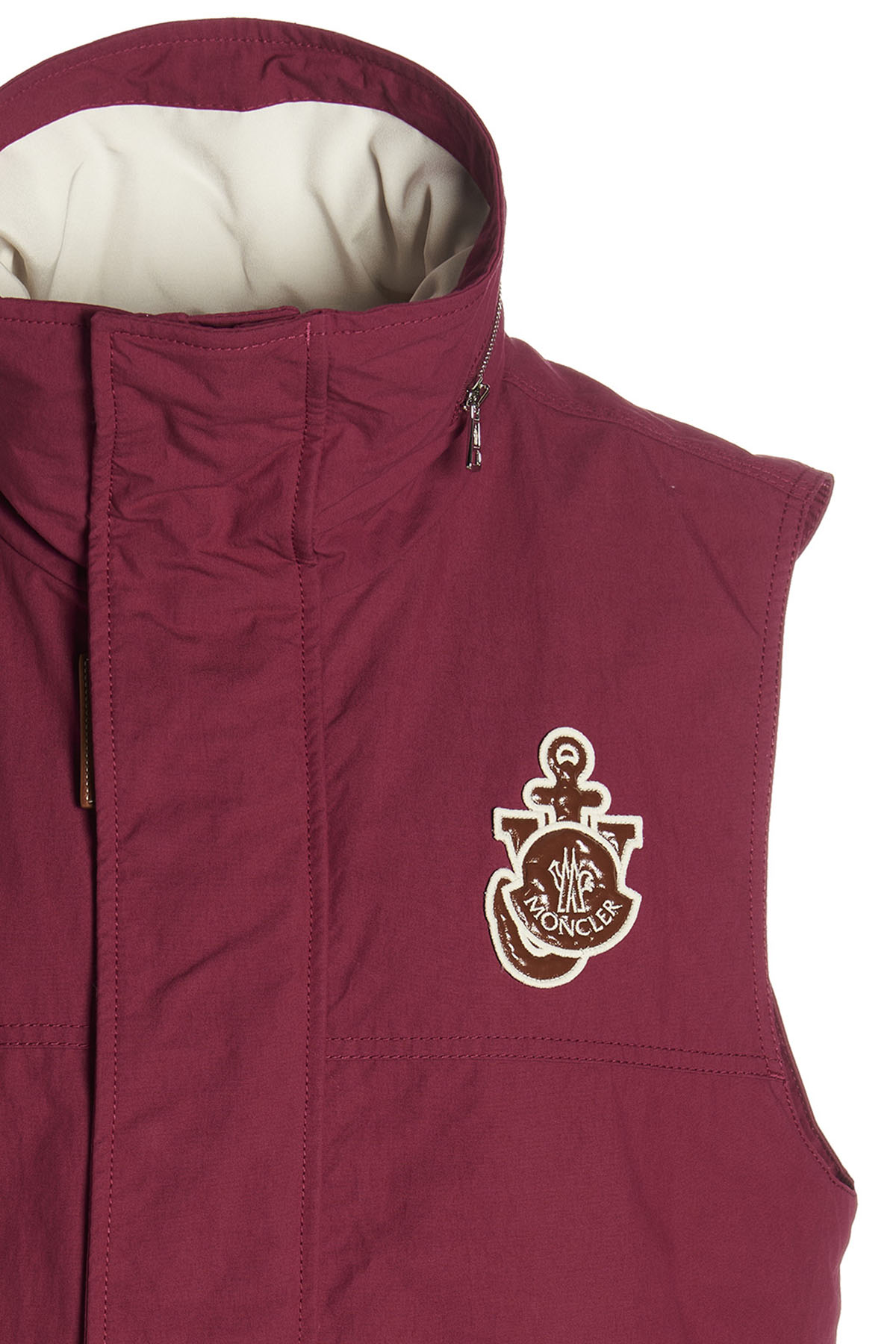 Moncler Genius x J.W.Anderson 'Tryfon' vest with down padding, high collar with removable hood, a zip and button closure, pockets and a front logo patch.