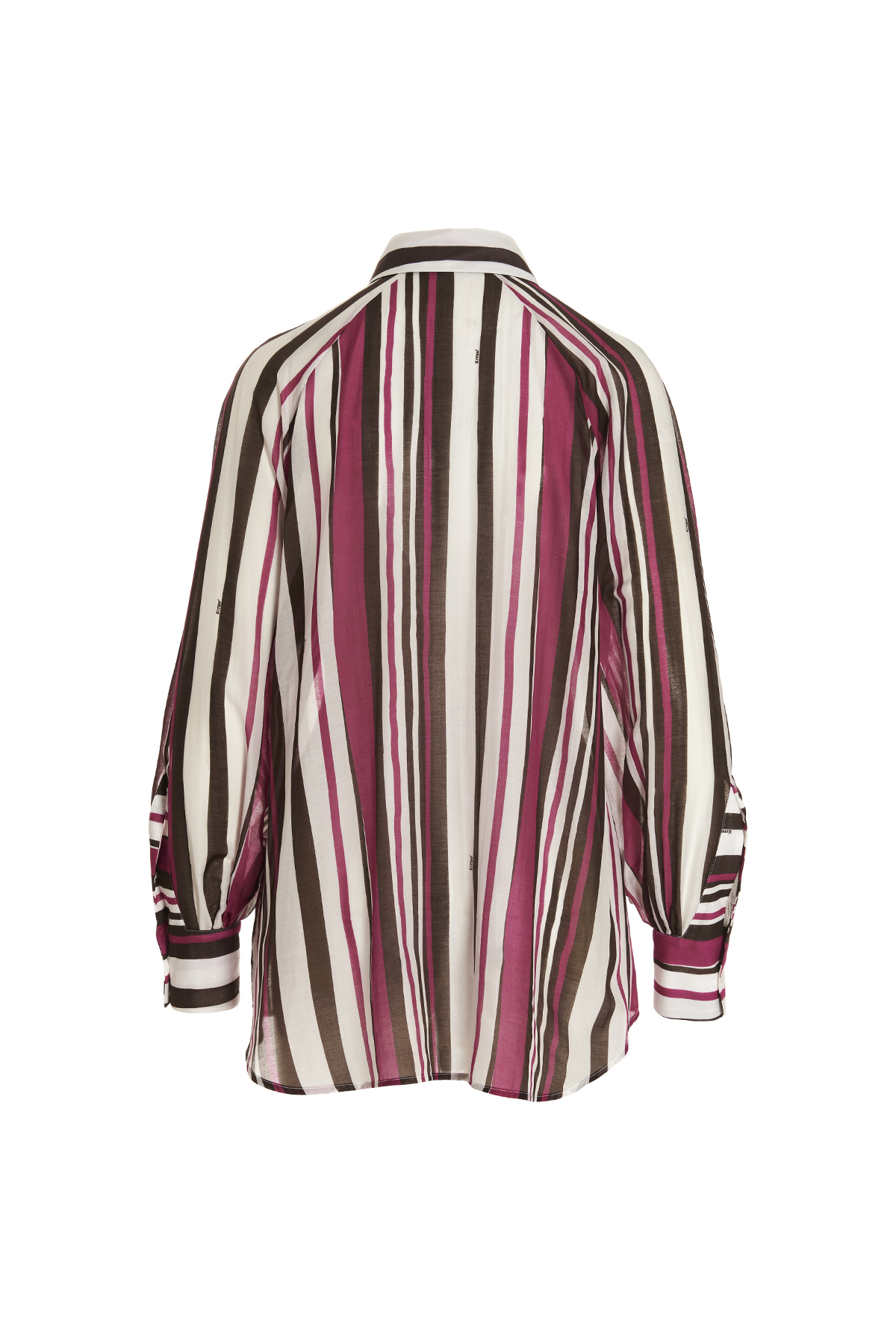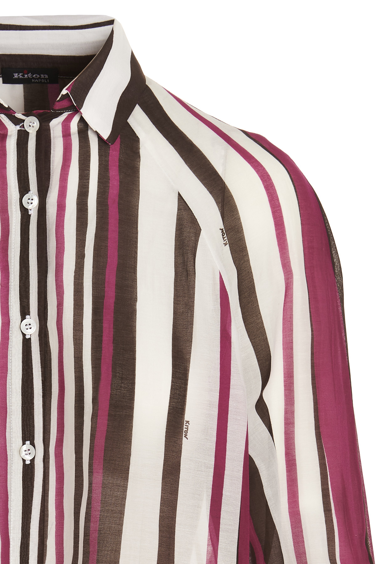 Striped cotton and silk shirt with button closure, and long cuffed sleeves.