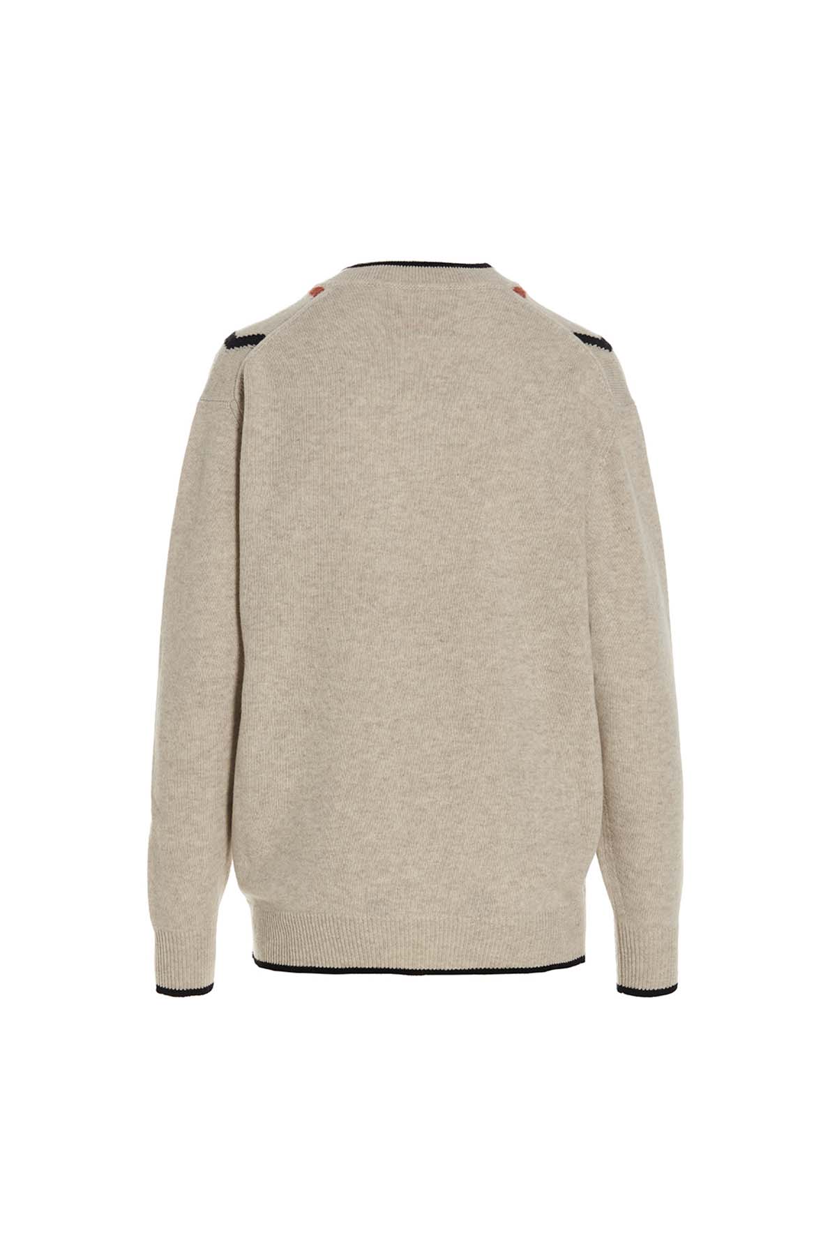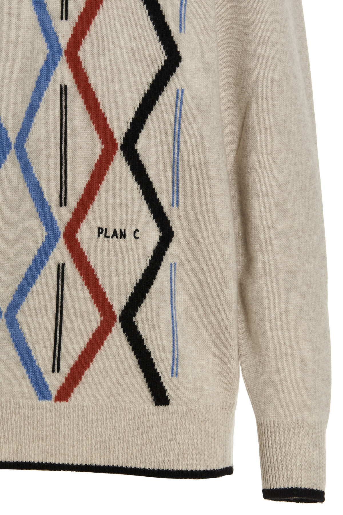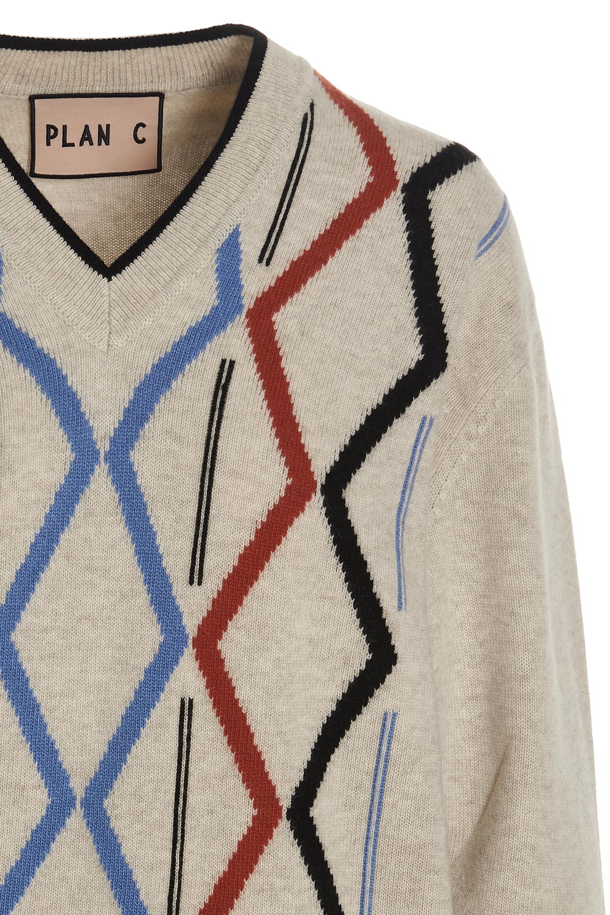 Wool and cashmere blend sweater with front jacquard pattern, V-neck, long cuffed sleeves.