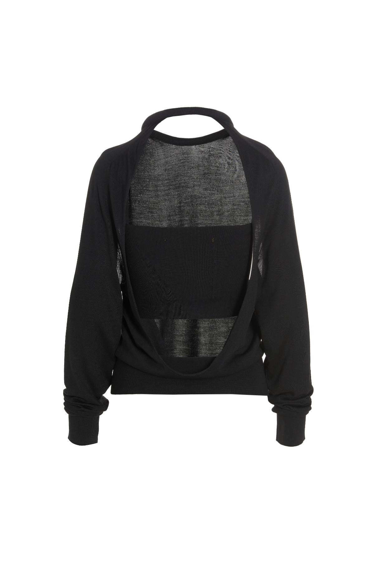 Silk sweater with cut-out details, removable top insert, long sleeves and a crewneck.