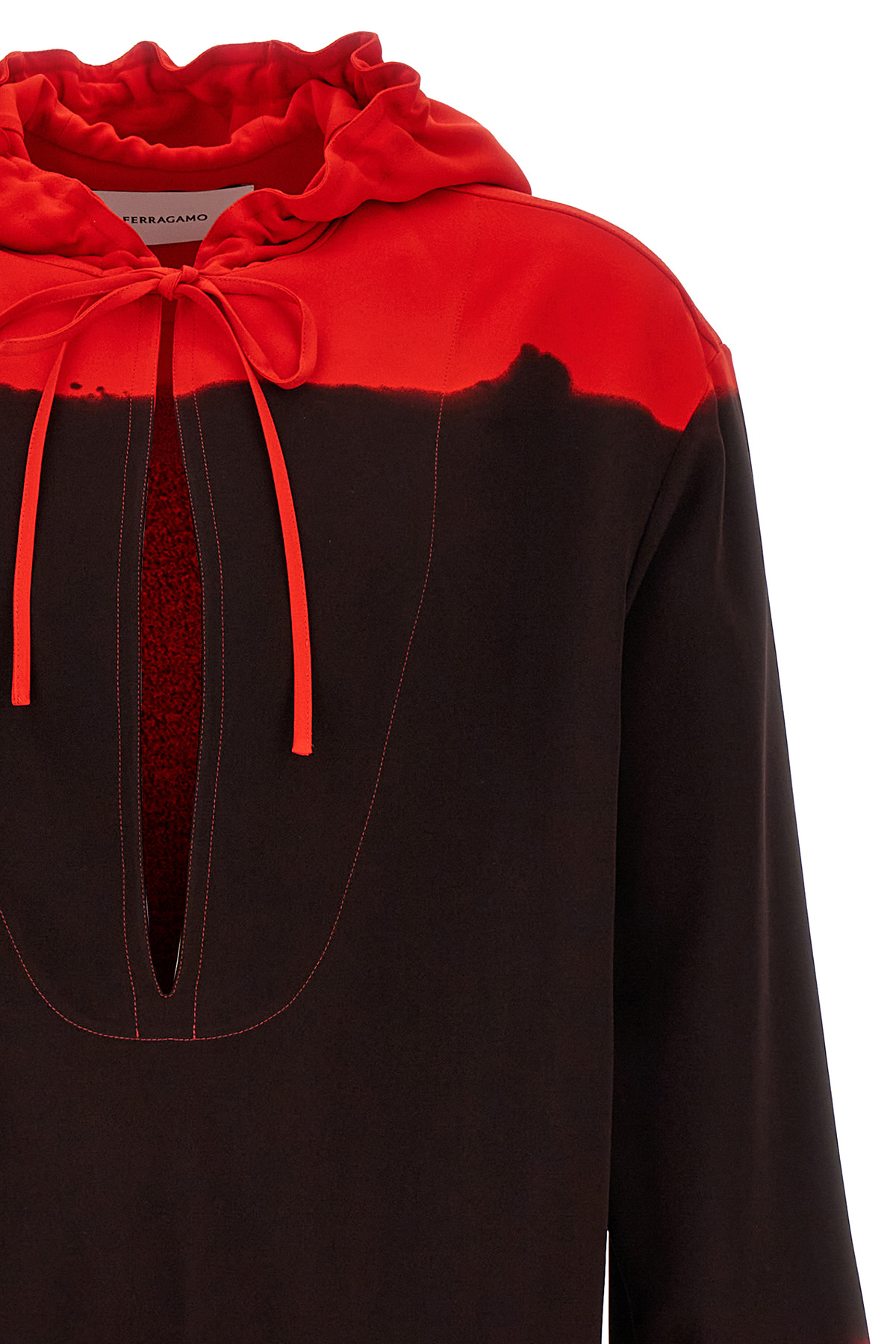 Fallen hooded blouse with side splits, deep V-neck with lacing, long sleeves with slit, and lacing.
