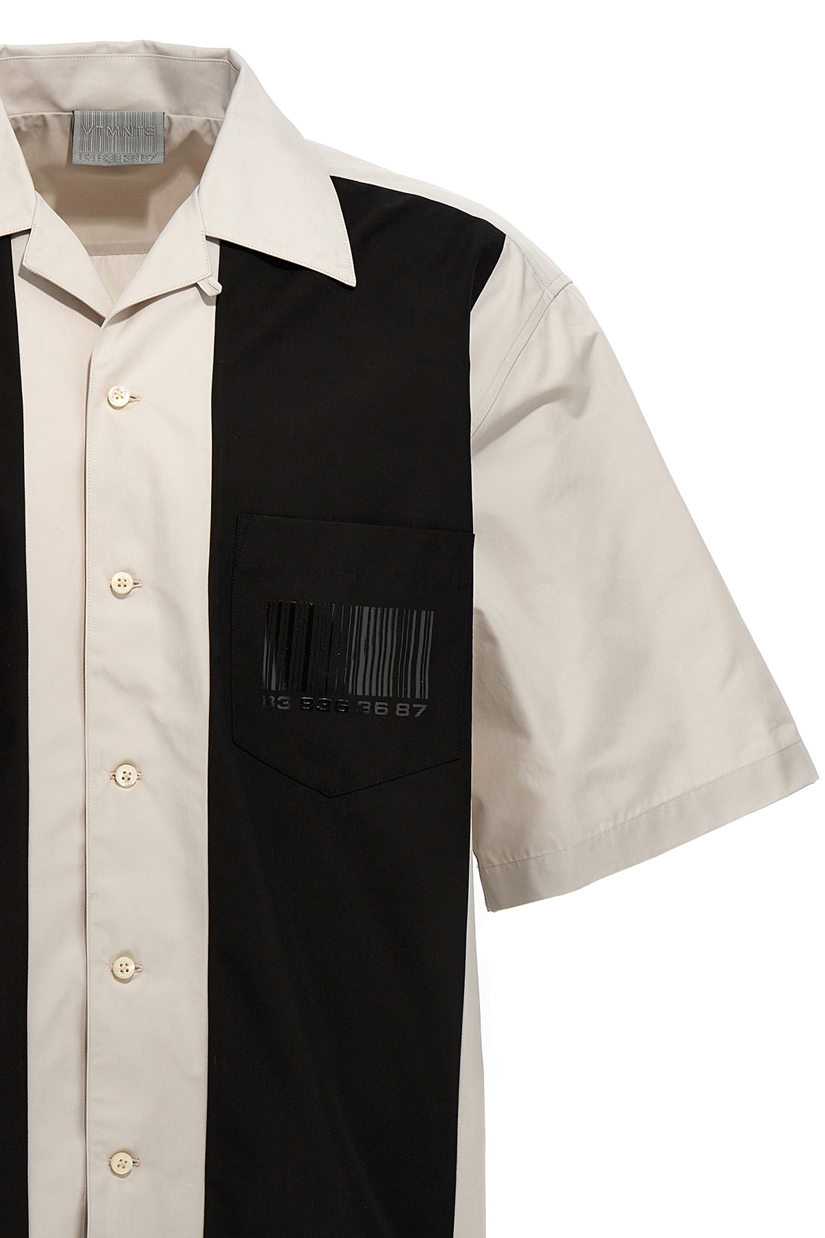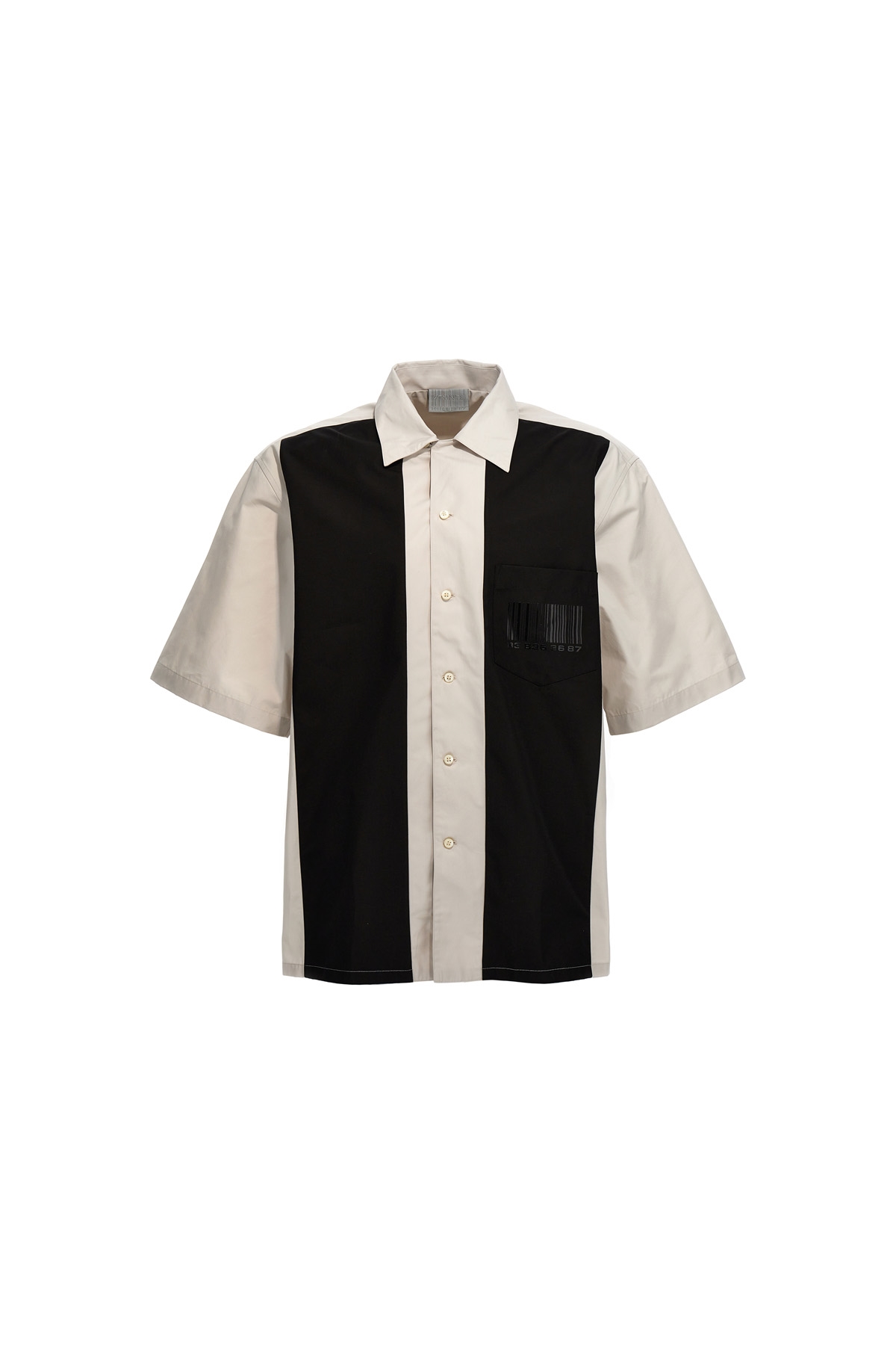 Bowling' patchwork cotton shirt with logo print at the front and back, a pocket, a button closure, and short sleeves.