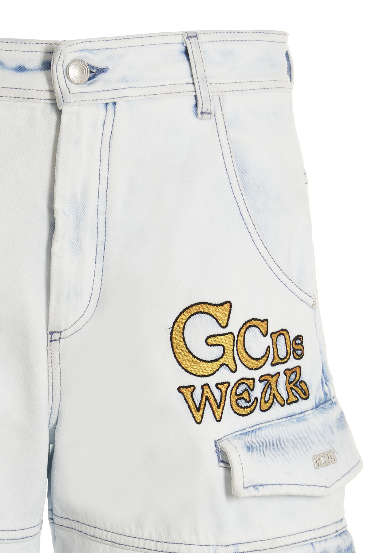 'Bleached Embroidered Ultracargo' cotton denim bermuda shorts with zip and button closure, multi pockets and all-over embroideries.