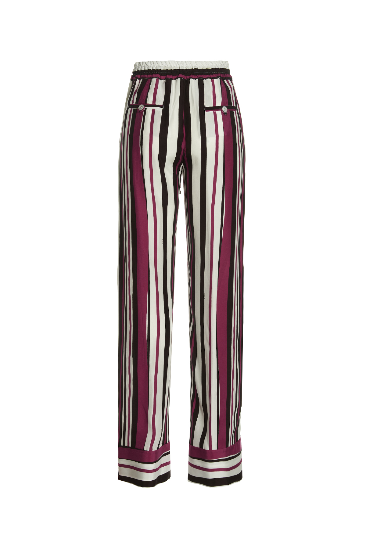 Silk pants with vertical striped pattern, straight leg and aelastic waistband.