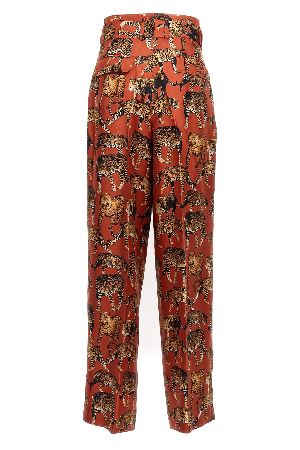Satin pants with all-over 'Giaguaro' print, zip and button closure, wide leg with central crease, pockets and a matching belt.