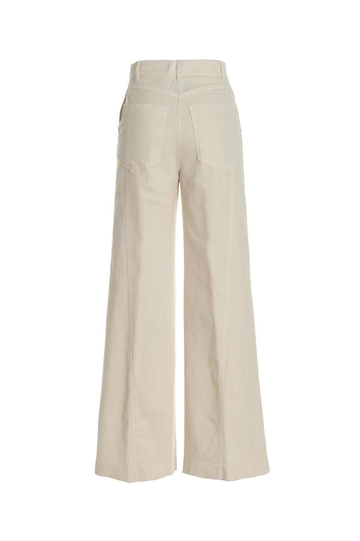 Stretch cotton jeans with a loose leg, slant pockets and a zip and button closure.