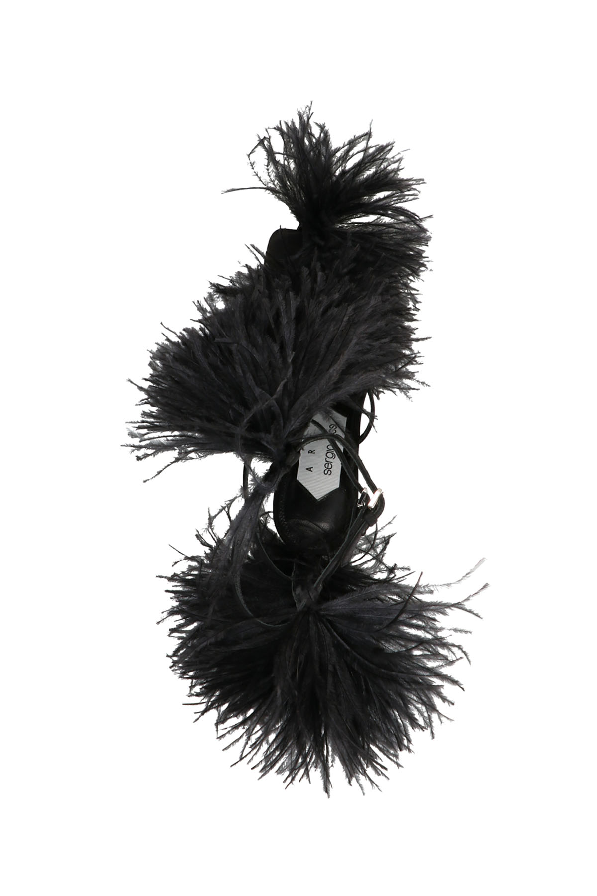 'Amazona' 'Amazona' Sandals in satin with all-over ostrich feather appliques, ankle straps and a heel.