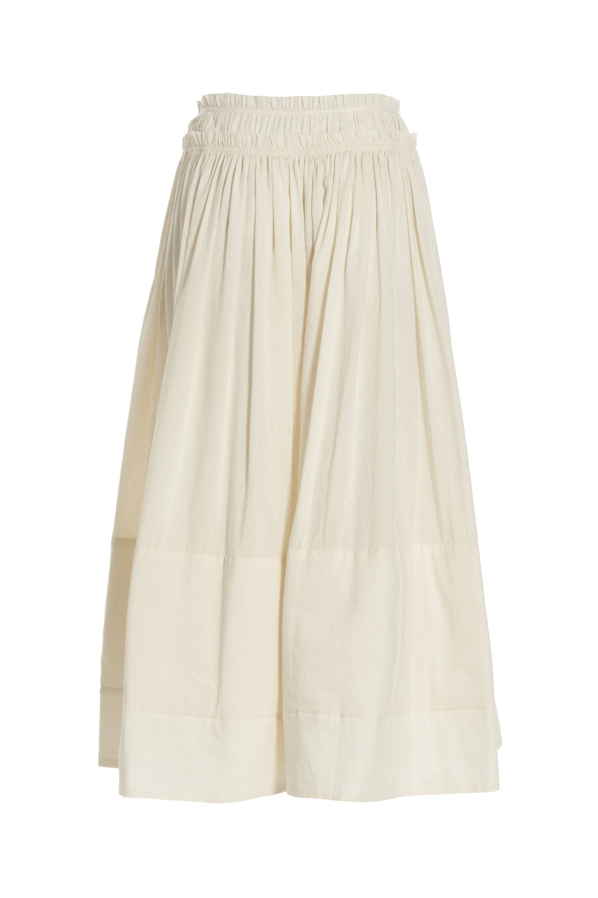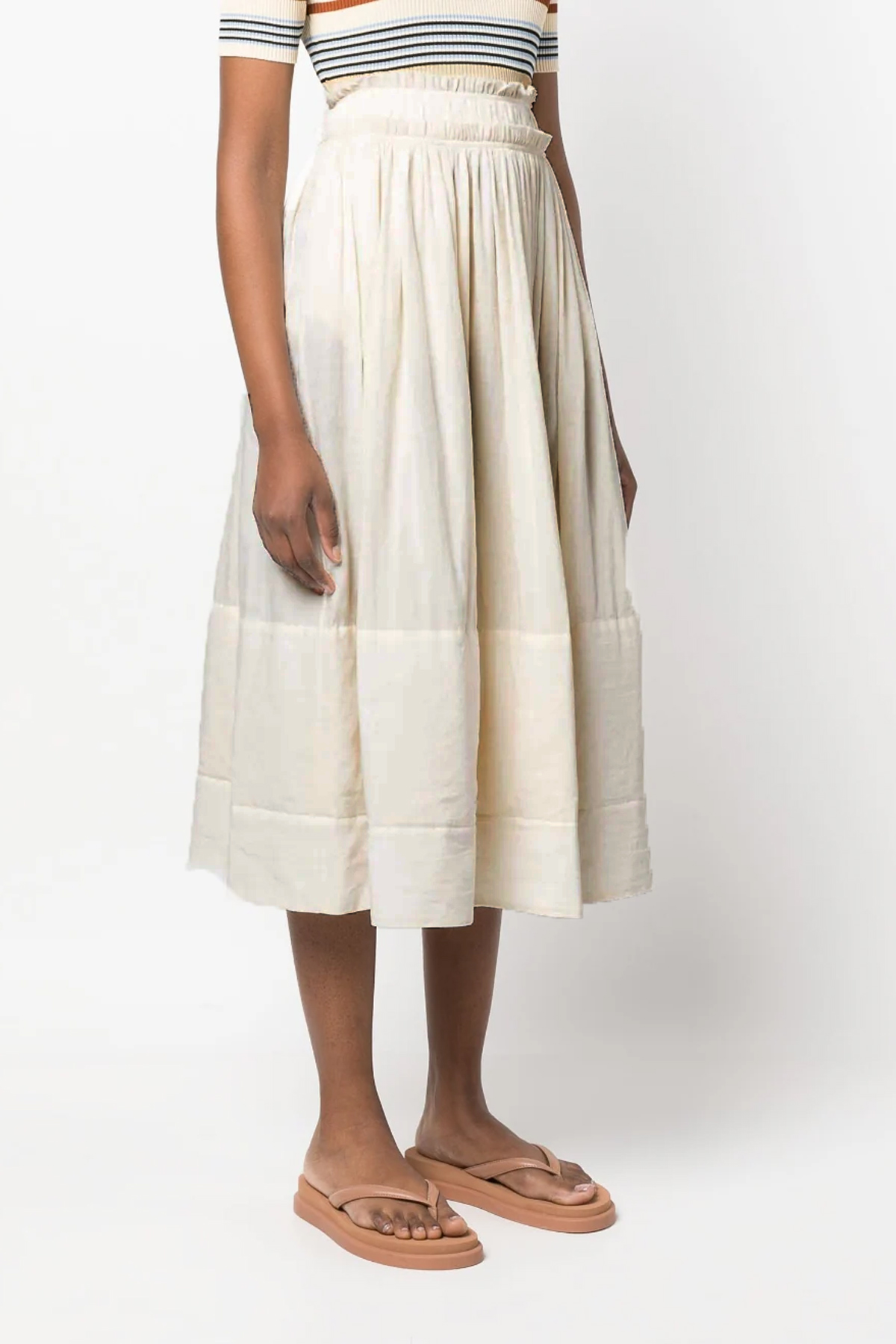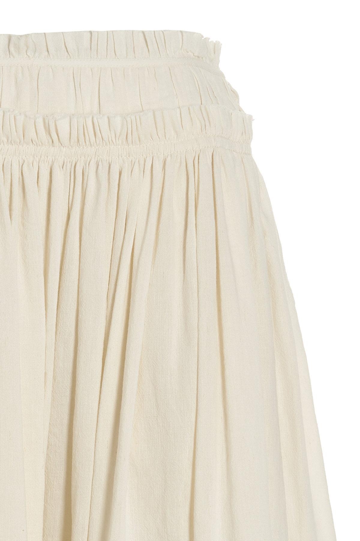 Rouched Waist' skirt in cotton and linen, with ruffle at the waist and a side zip closure.