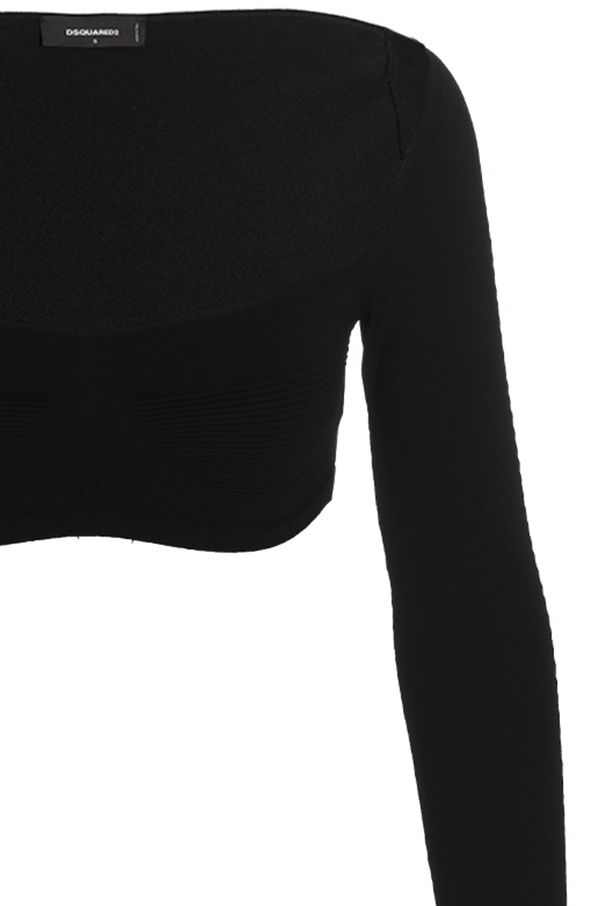 Viscose blend cropped sweater with ribbed pock, squared neckline and long sleeves.