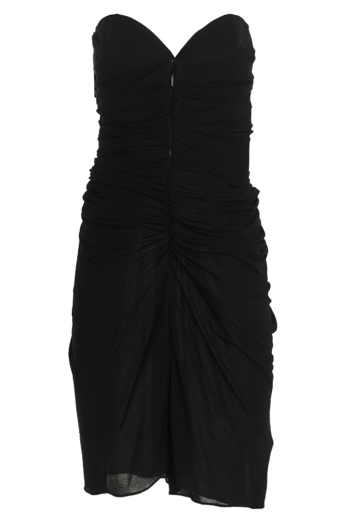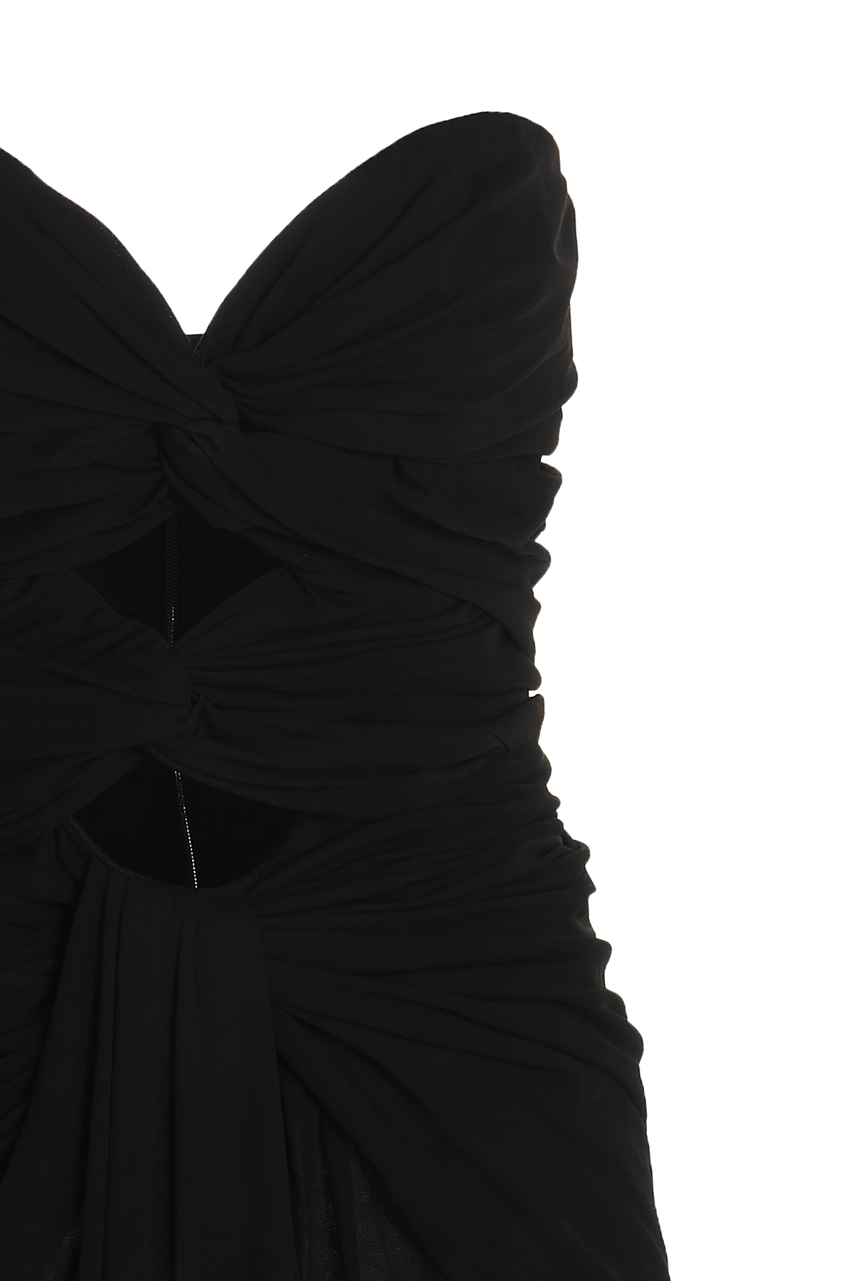 Short viscose strapless dress with cut-out details at the front, draping, a hook-and-eye and snap closure and a band neckline.