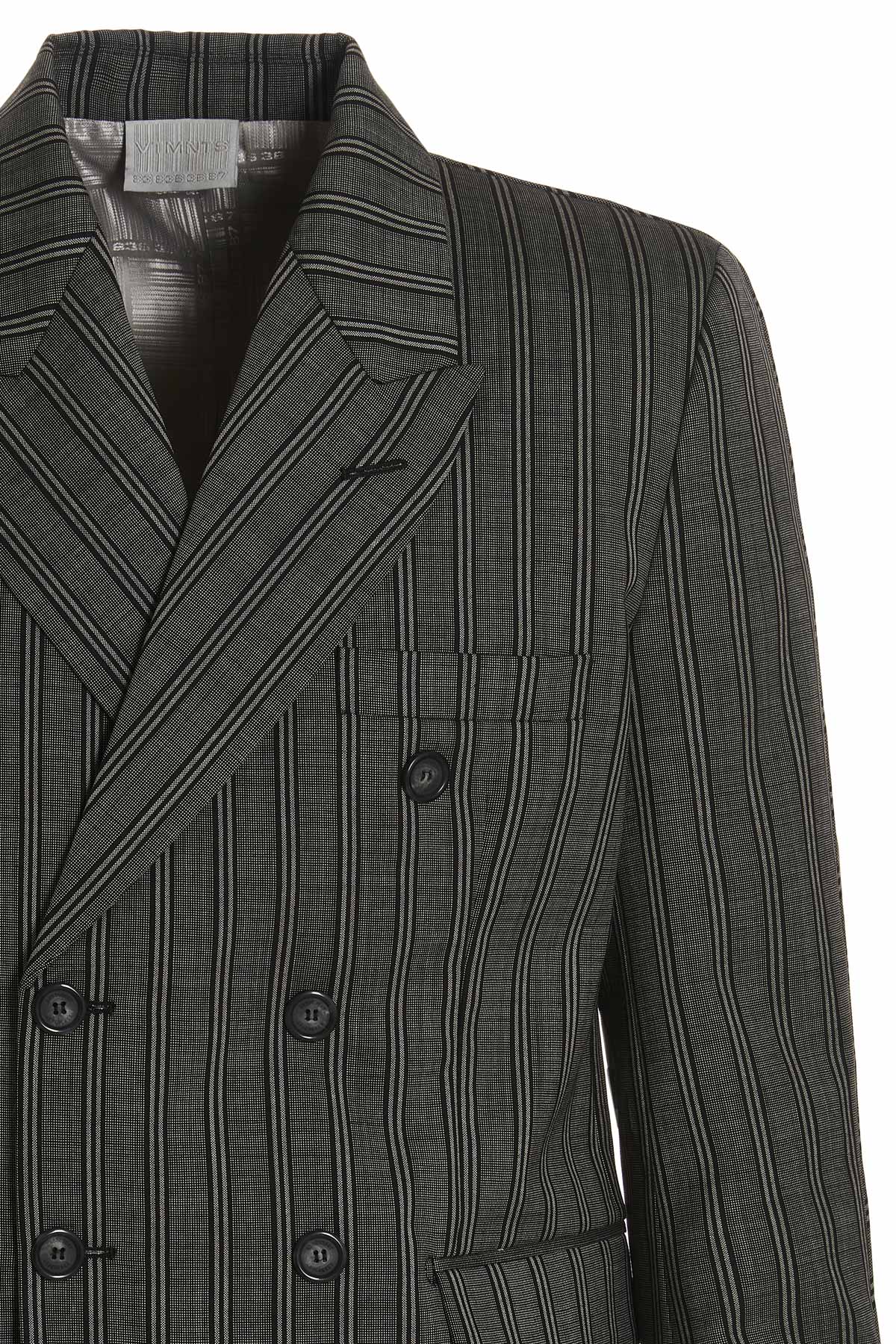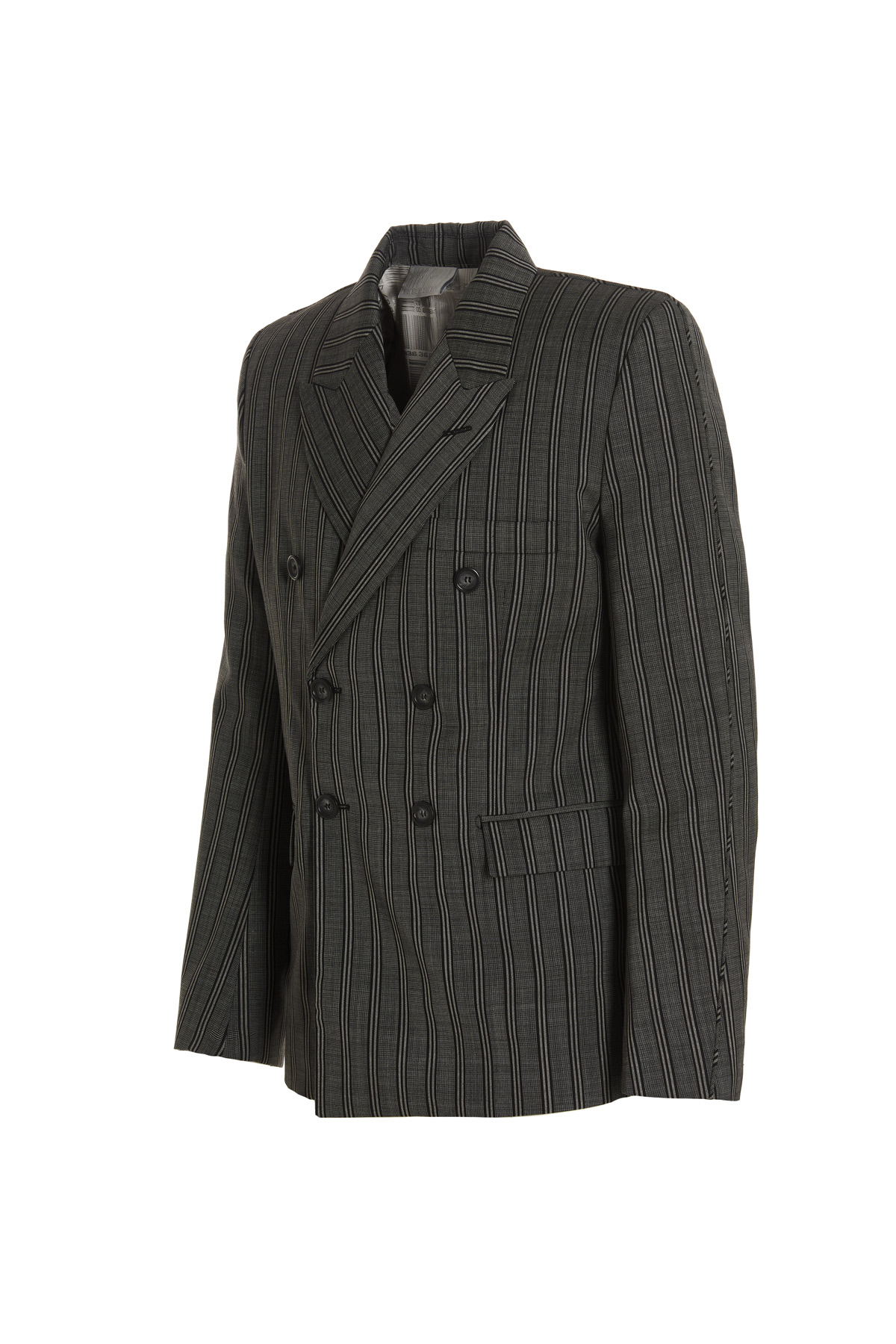 'Tonal Double Breasted Tailored' stripe wool blazer with double-breasted button closure, pockets, long sleeves, shoulder pads, back splits.