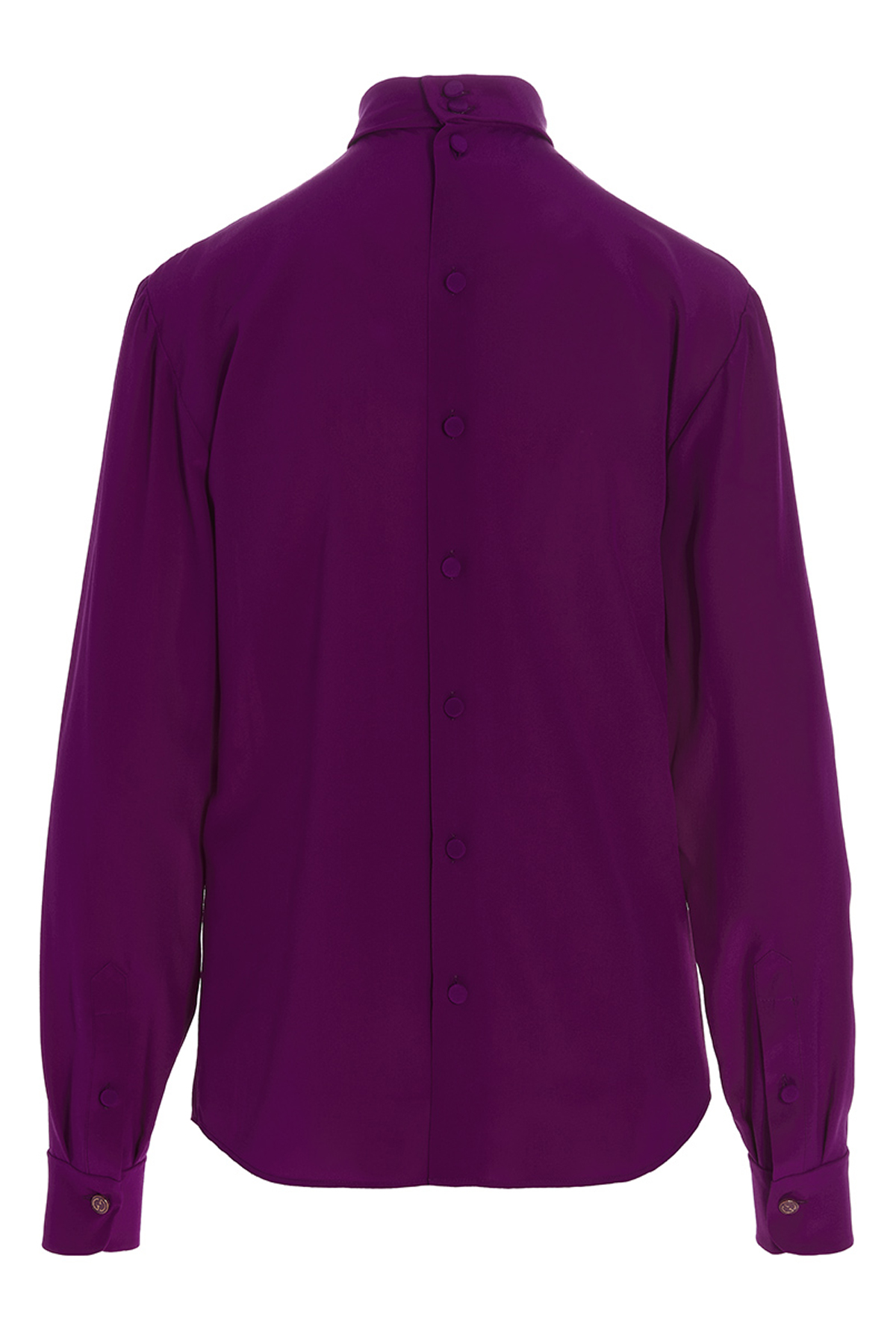Crepe de chine silk shirt with enameled button with GG Round Cross, list collar and a button closure at the back.