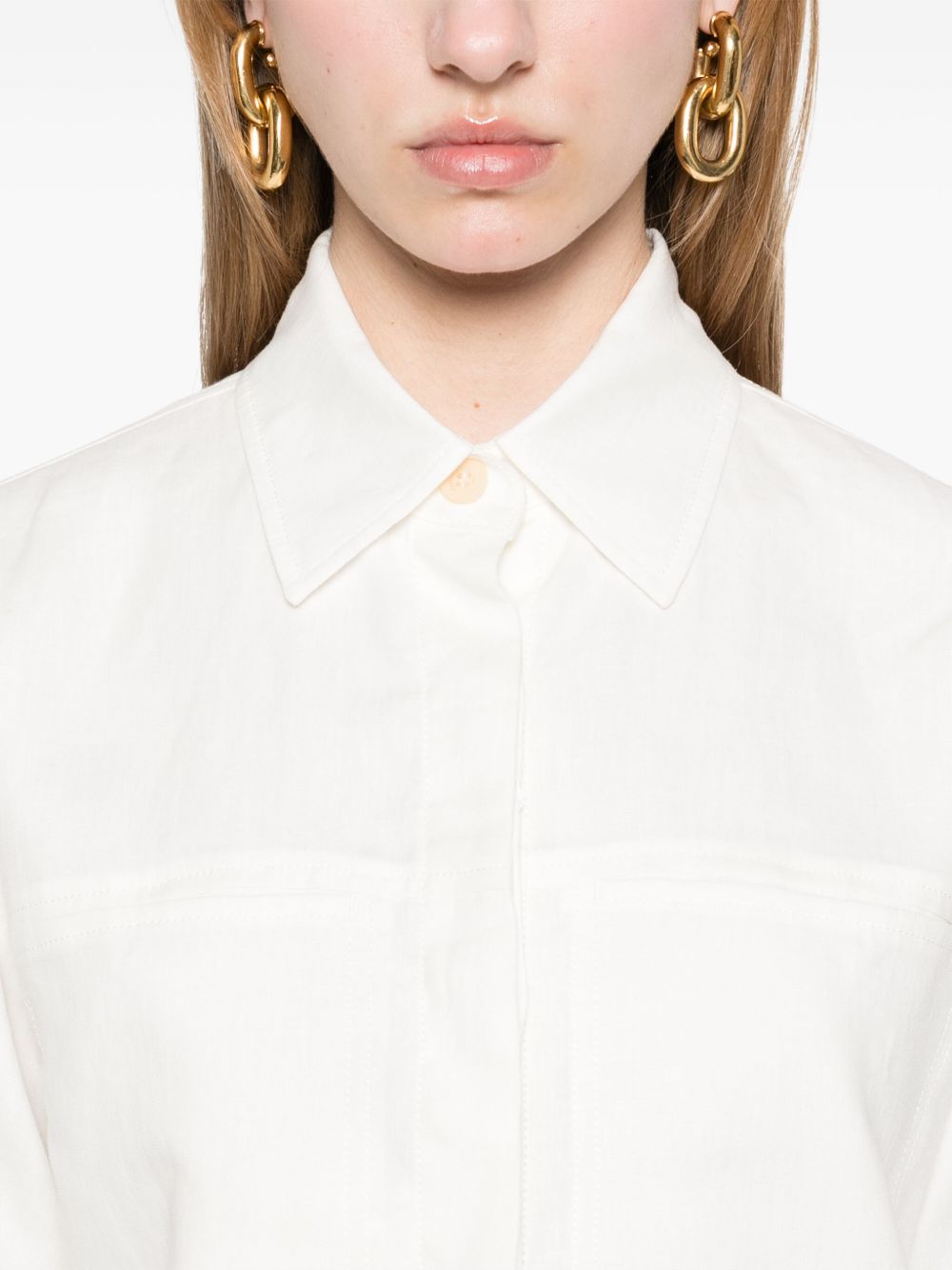 white concealed front button fastening buttoned cuffs two slit pockets at the chest cropped