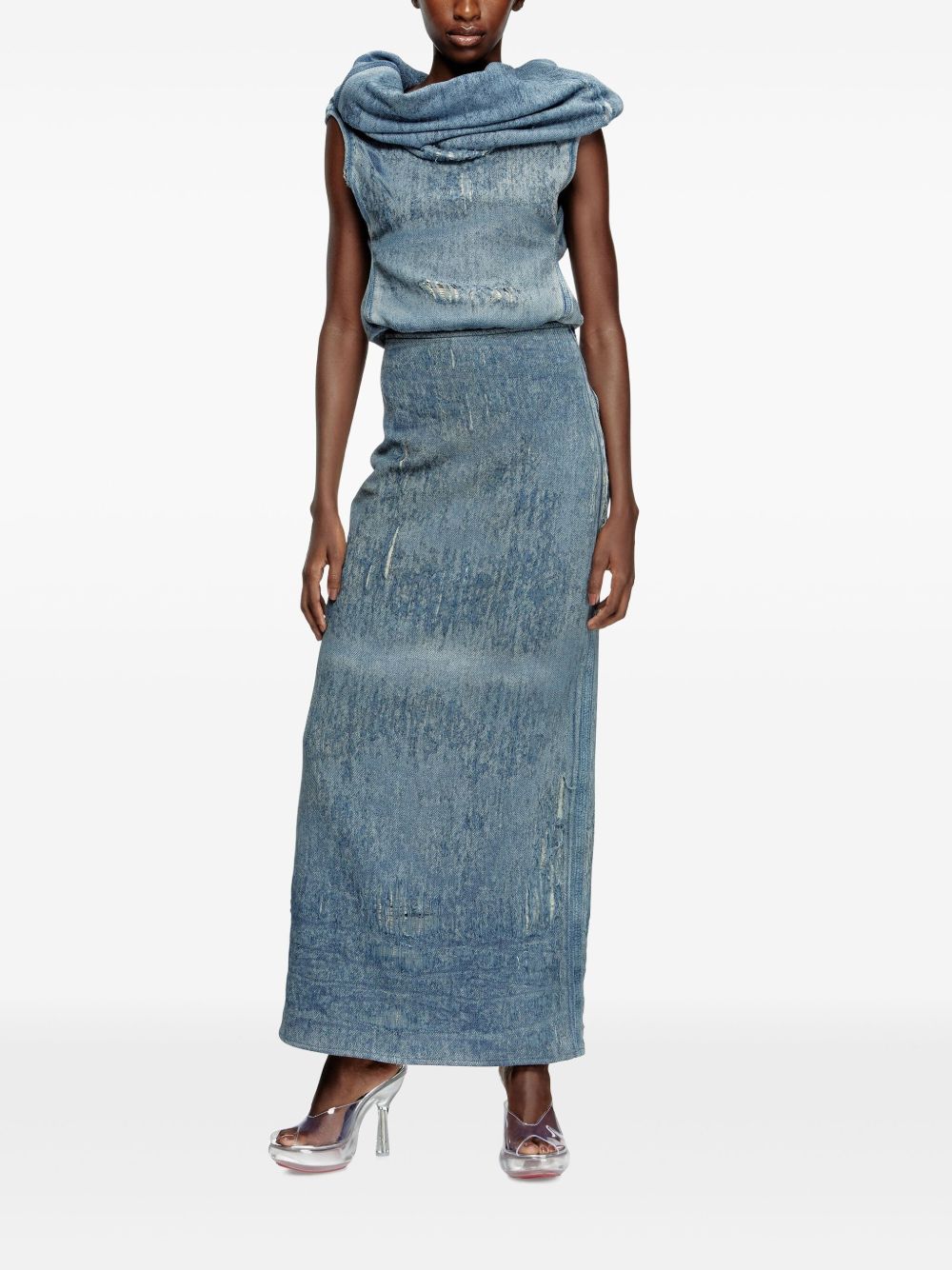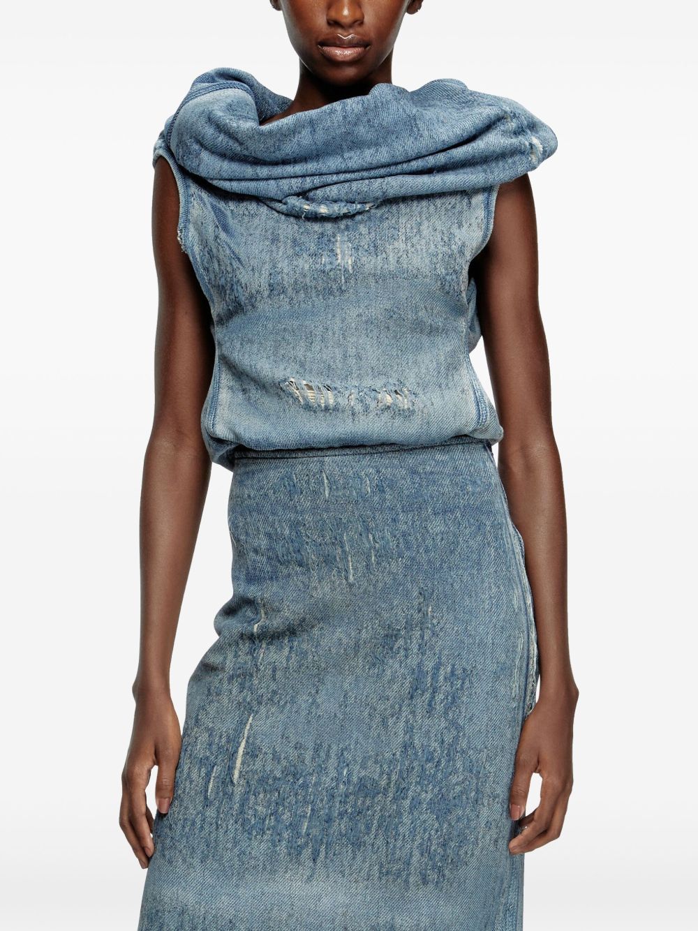 light blue drawstring hem draped detailing distressed effect sleeveless