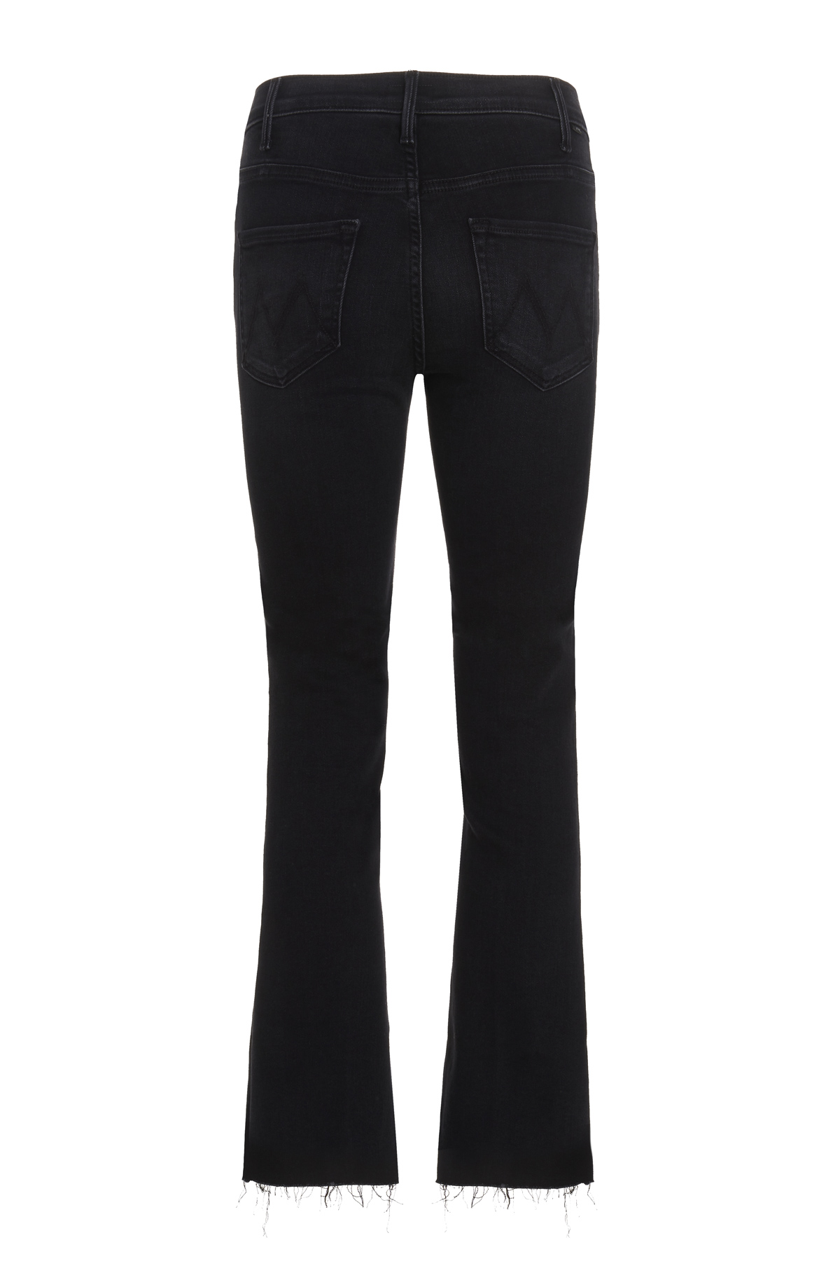 'The Hustler Ankle Fray' denim jeans with a zip and button closure, tone-on-tone logo embroidery on the back pockets and frayed leg bottoms.