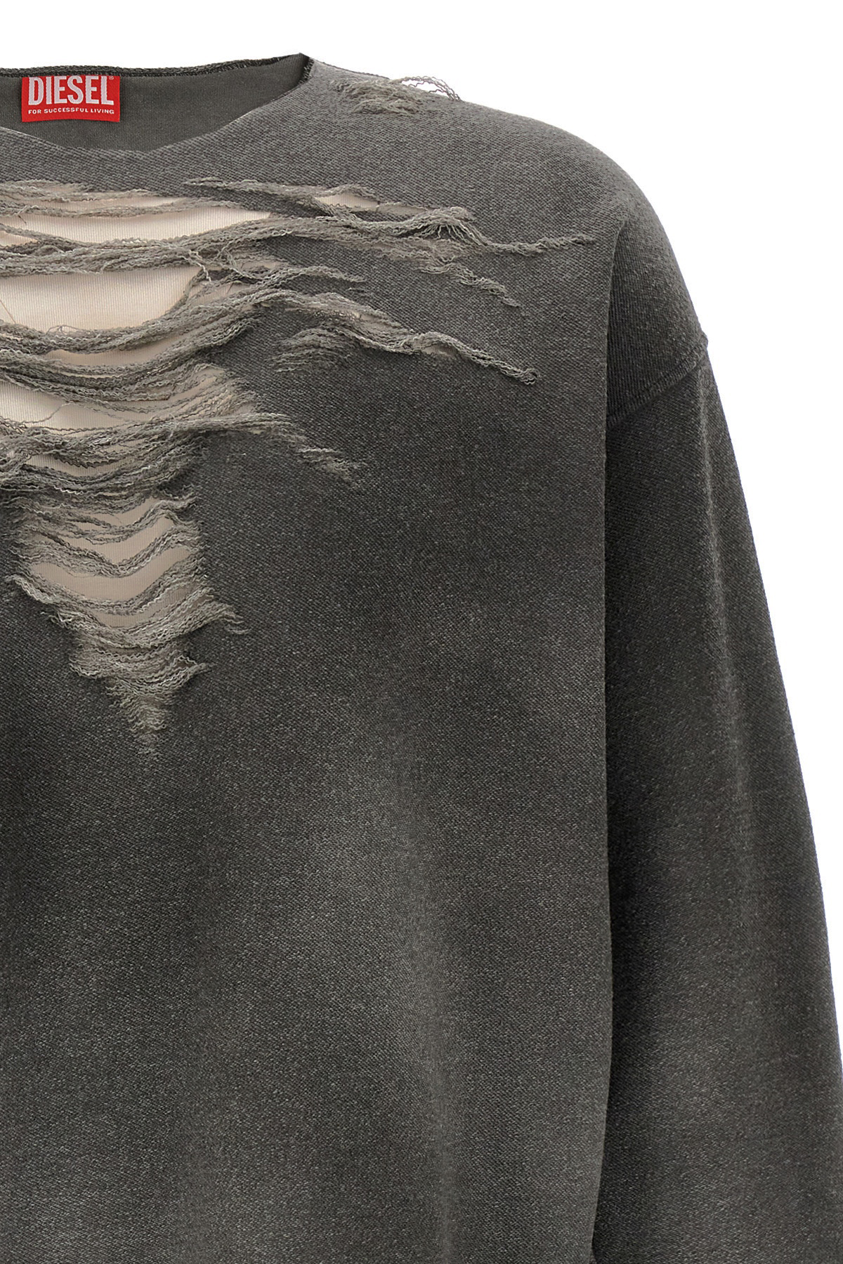 'S-Ruben' dyed cotton sweatshirt with vanise pattern and front distressed effect details with tulle application for a I don't see effect, crew neck, long sleeves with dropped shoulder.
