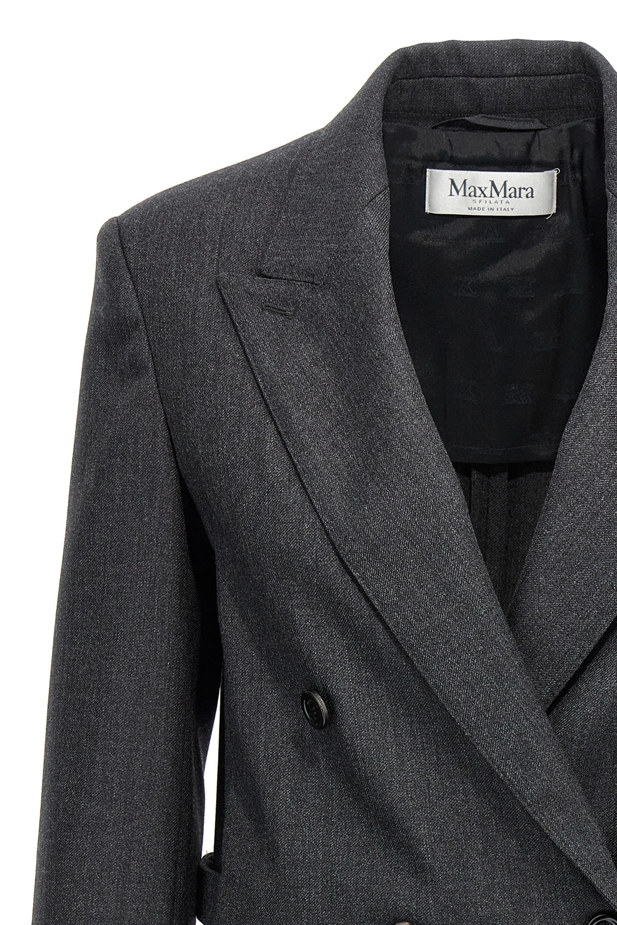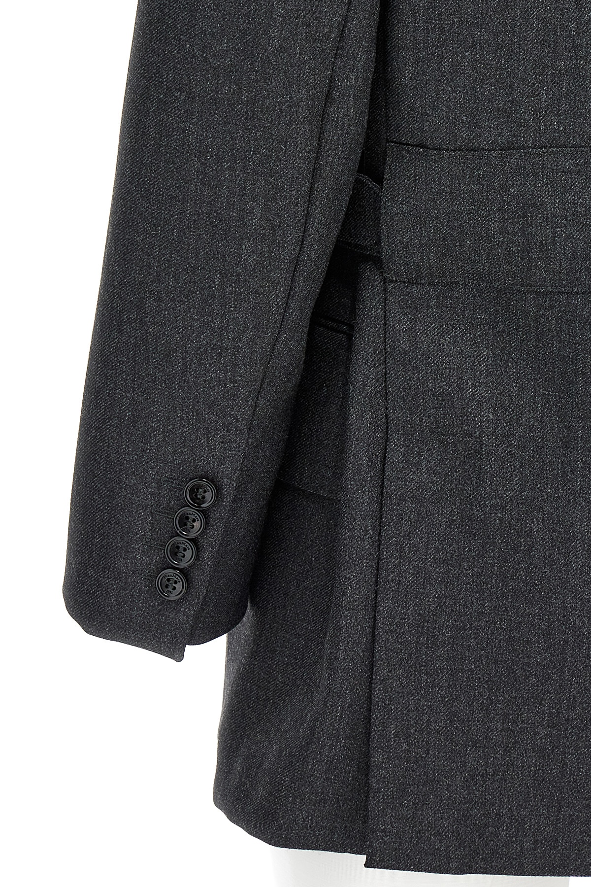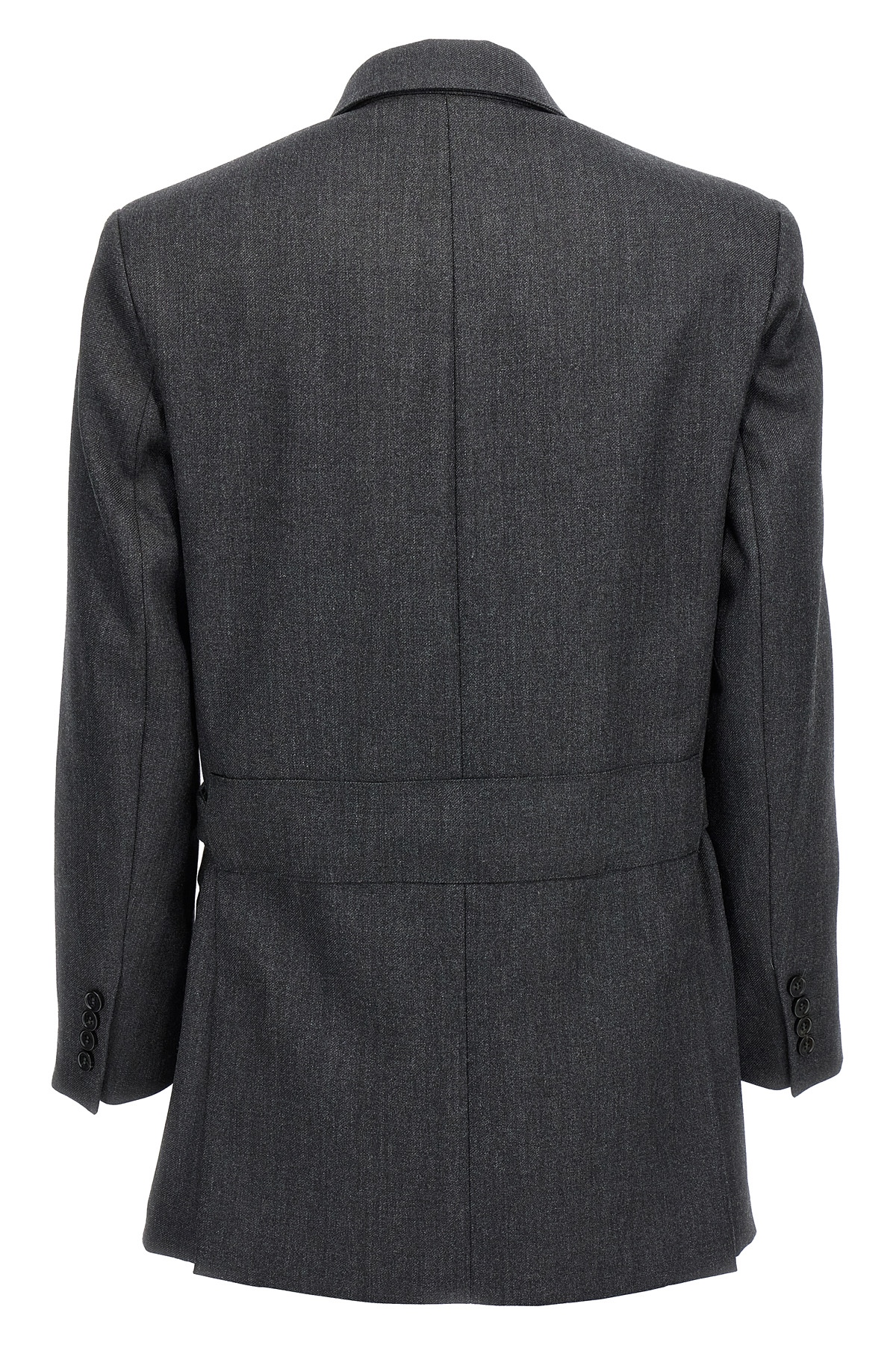 'Latino' blazer in melange wool gabardine with peak lapels, double-breasted button closure and side strap, flap pockets, long sleeves.
