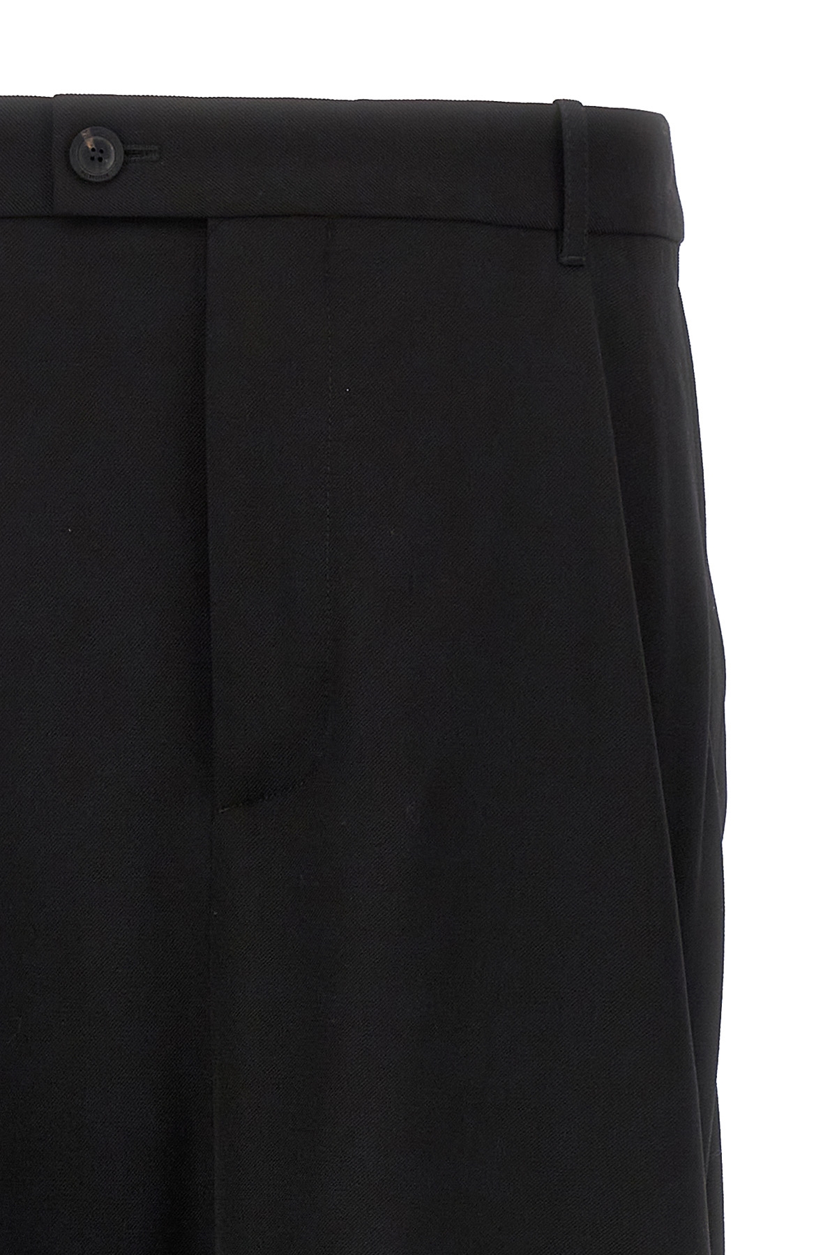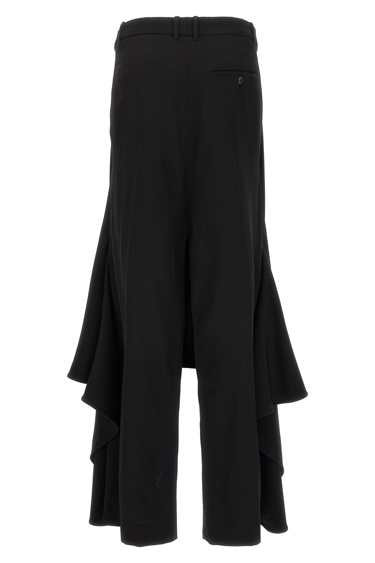 'Deconstructed Godet' wool blend skirt with zip and button closure, and asymmetric hem.