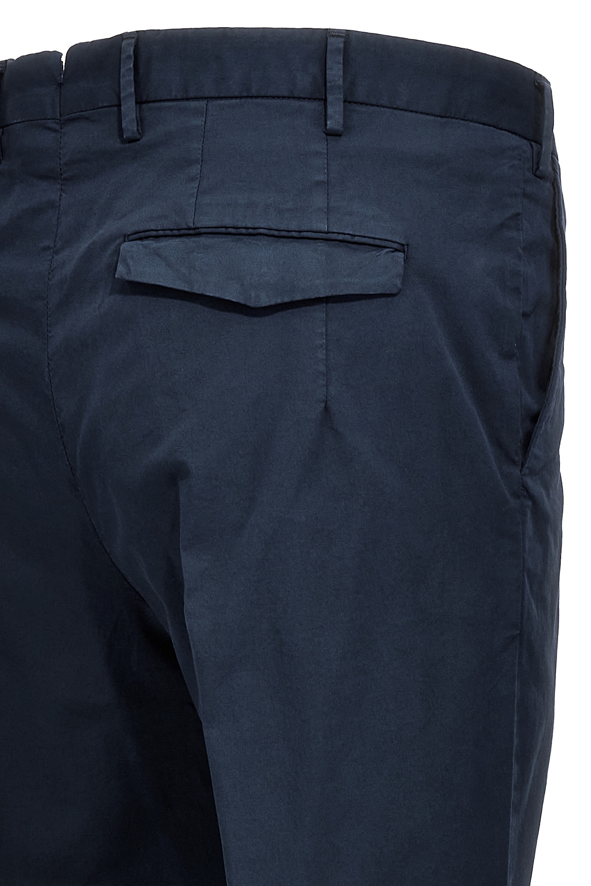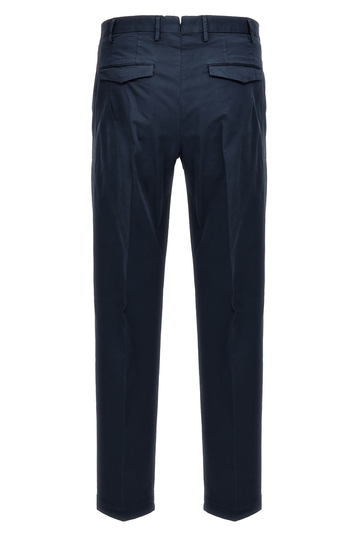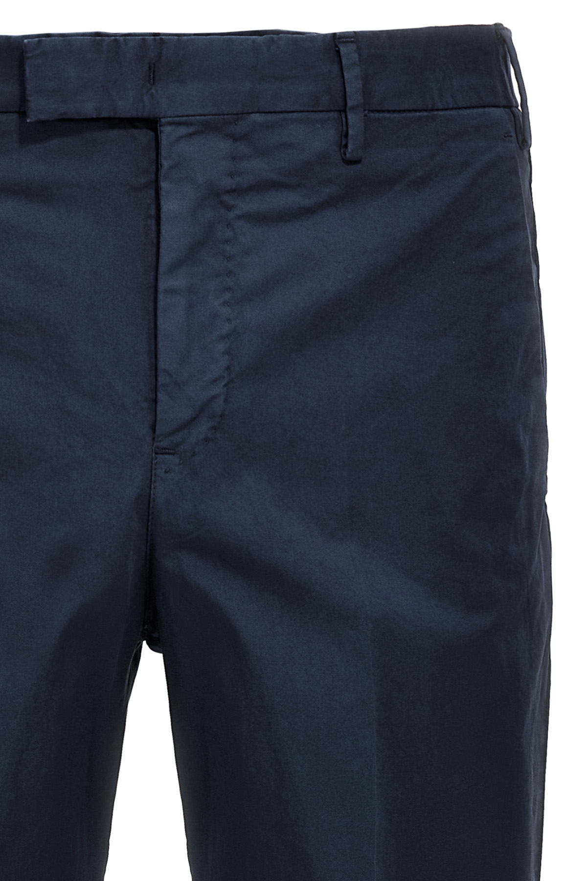 'Master' stretch cotton pants, zip, hook and button closure, pockets.