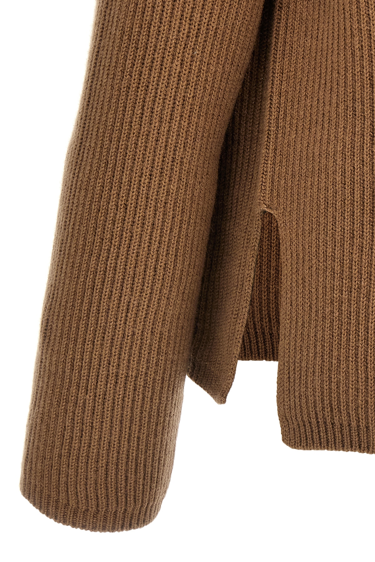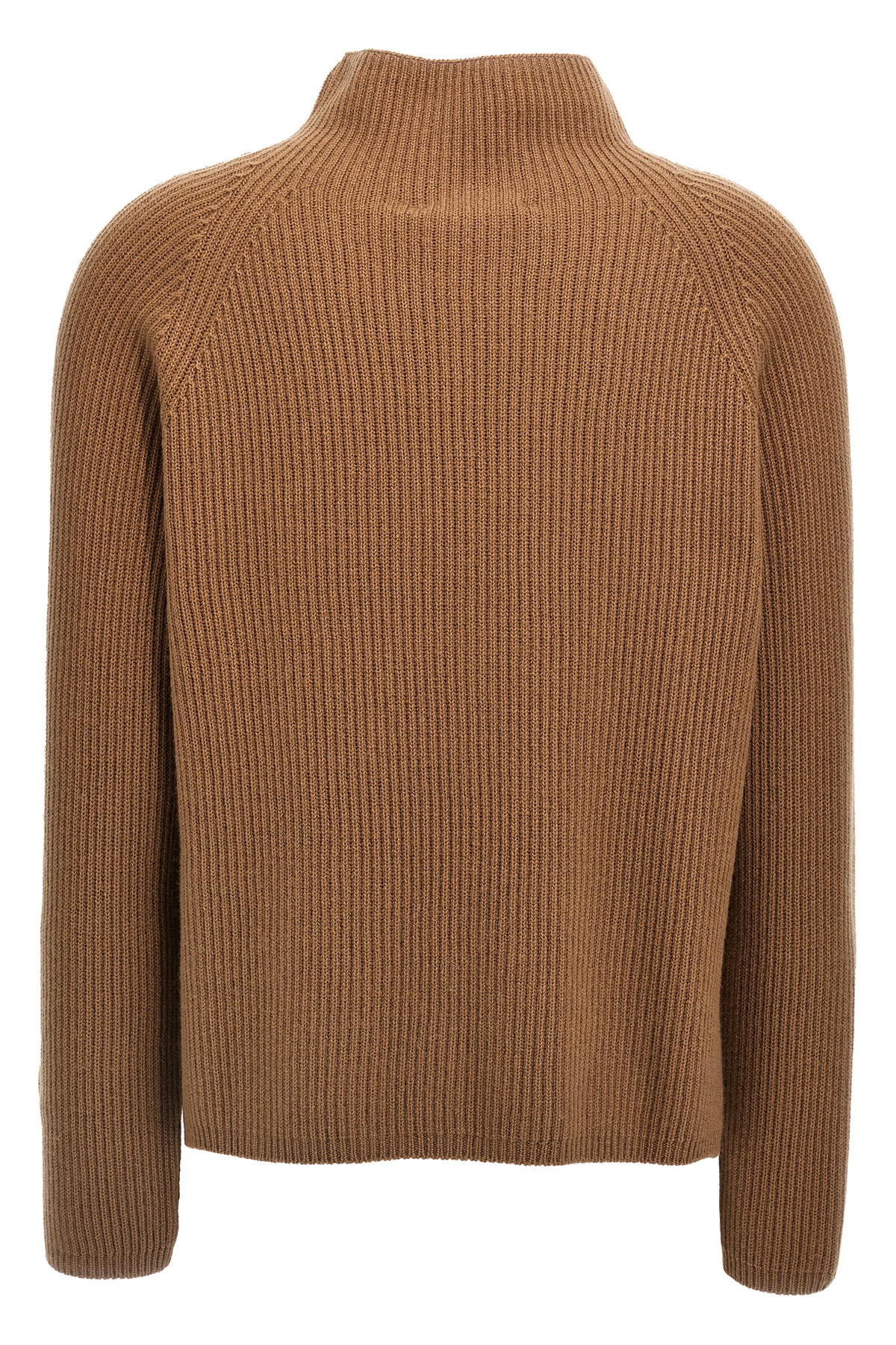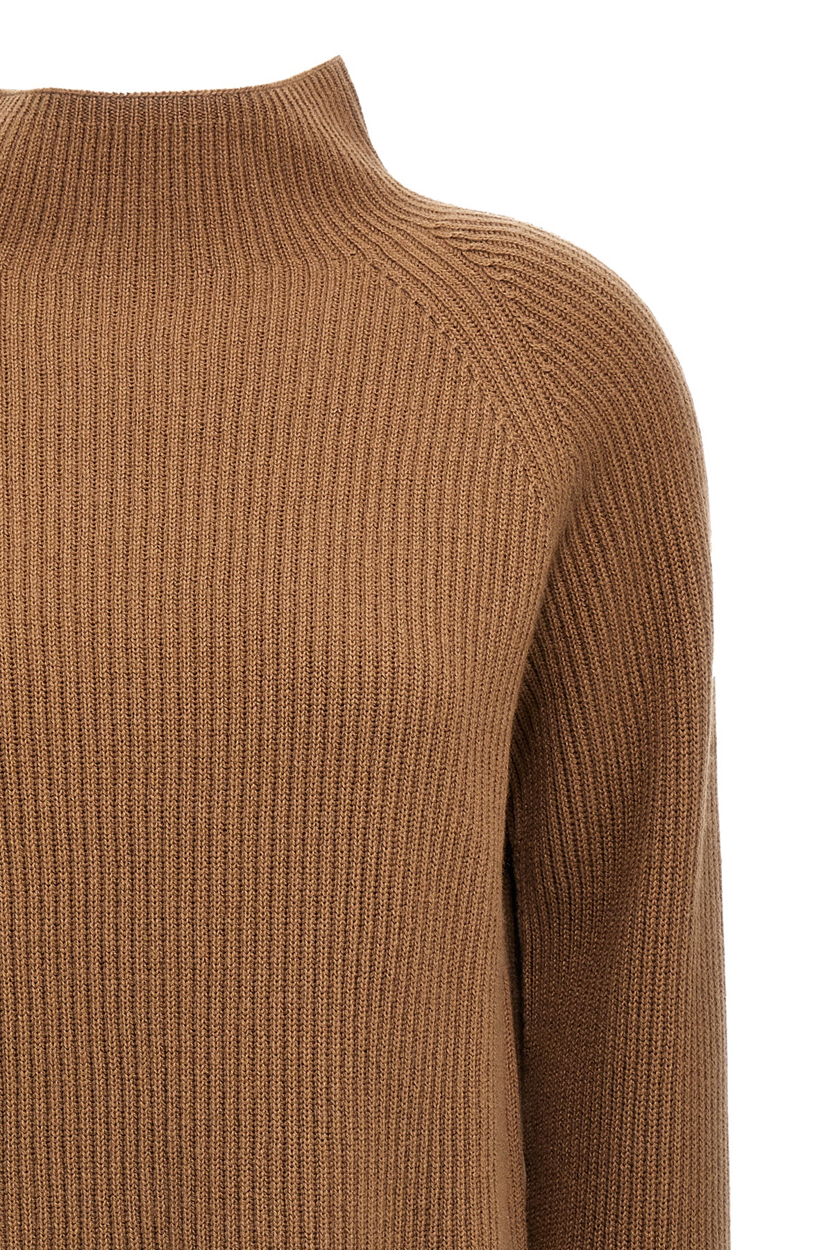 'Elica' English rib wool and cashmere sweater with high neck, long sleeves, side splits.