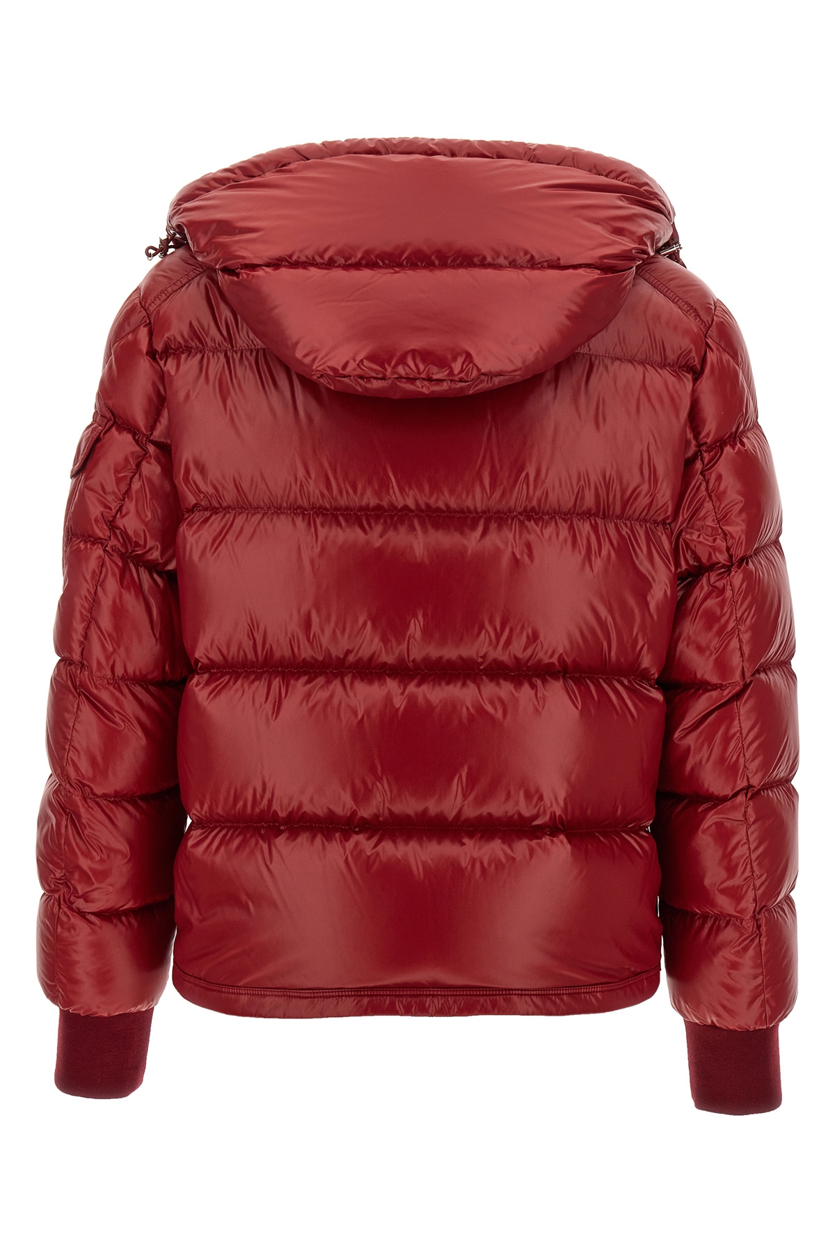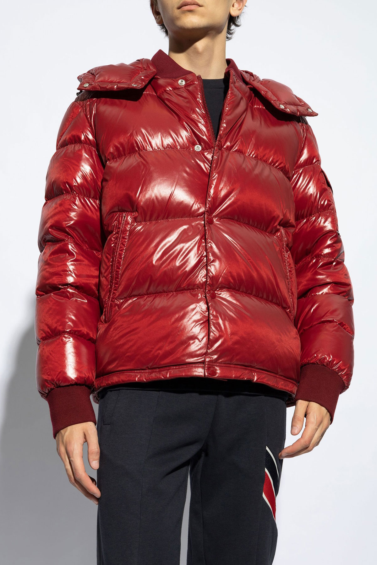 'Maljasset' padded nylon laque down jacket with removable hood, button closure, pockets, long sleeves with knitted cuffs.