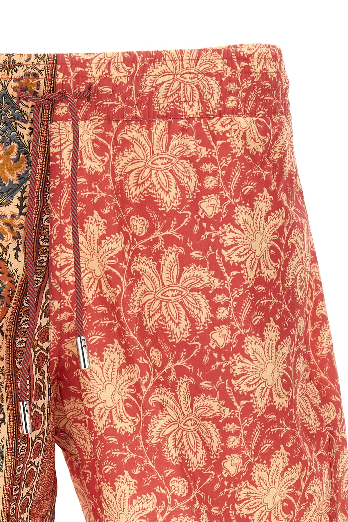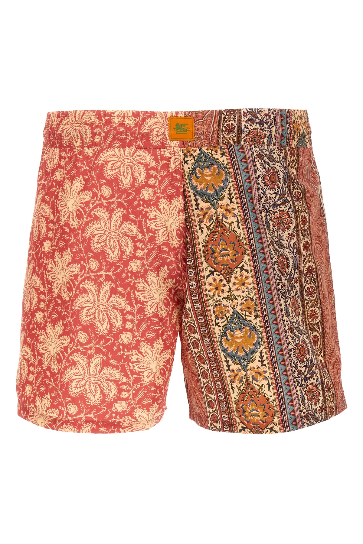 All-over print technical fabric swimsuit with double pattern, back logo patch, adjustable drawstring elastic at the waist, pockets, inner mesh briefs.