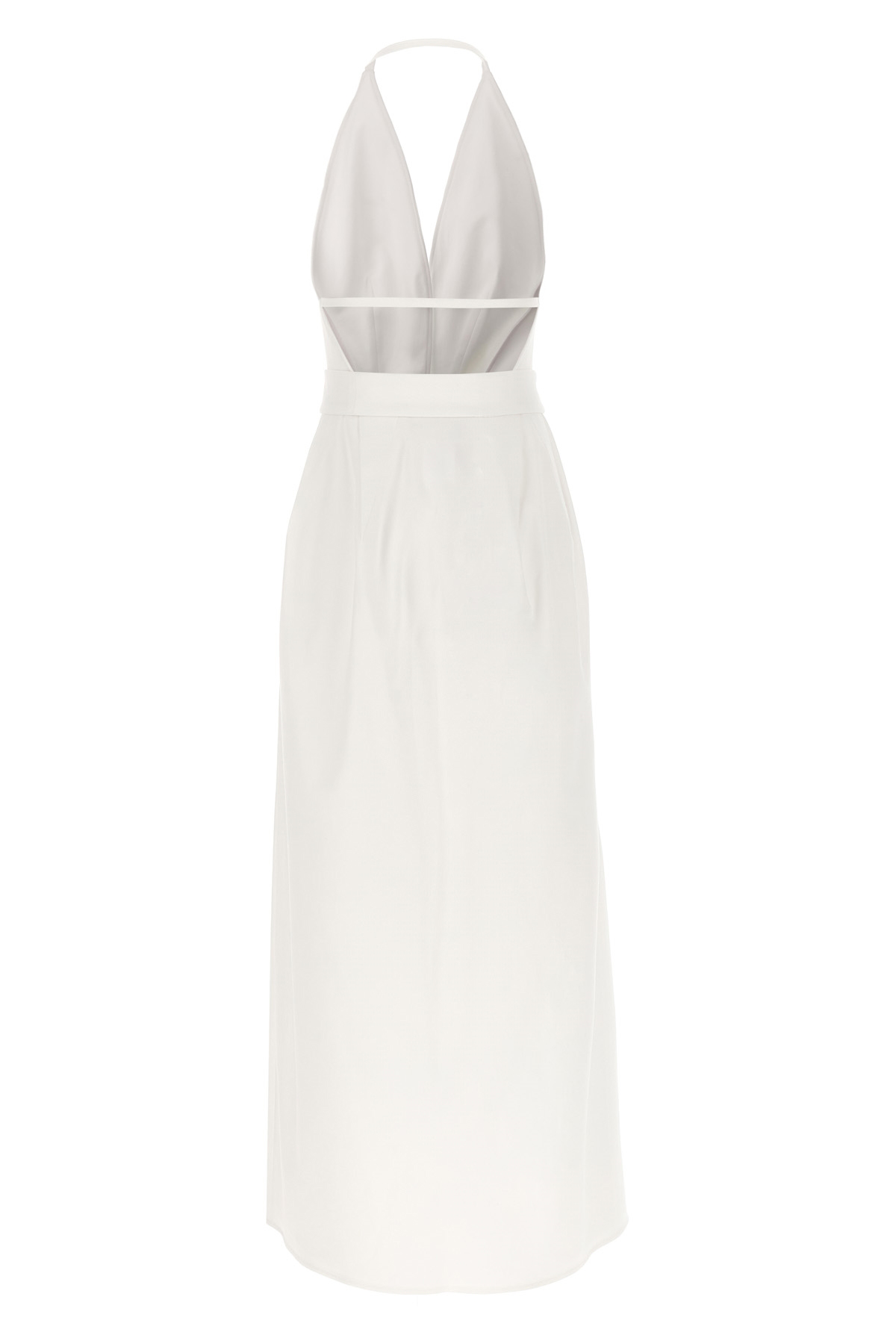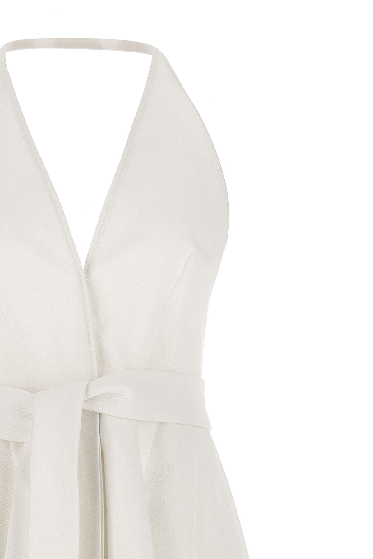 Long 'Ancona1234' dress in stretch cotton gabardine with American neckline with bare back, sleeveless, front button closure, wide skirt with front and back pleats, pockets.