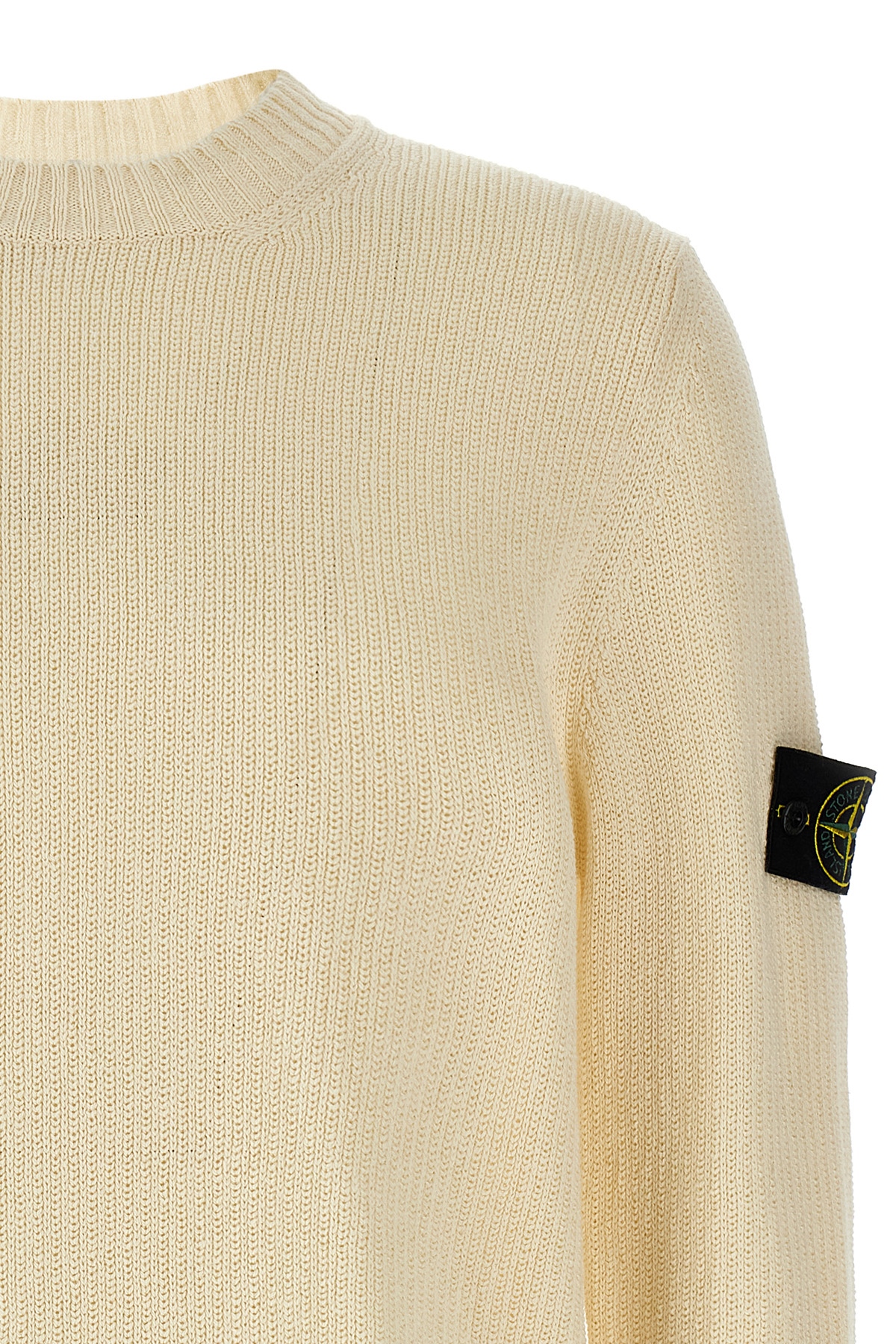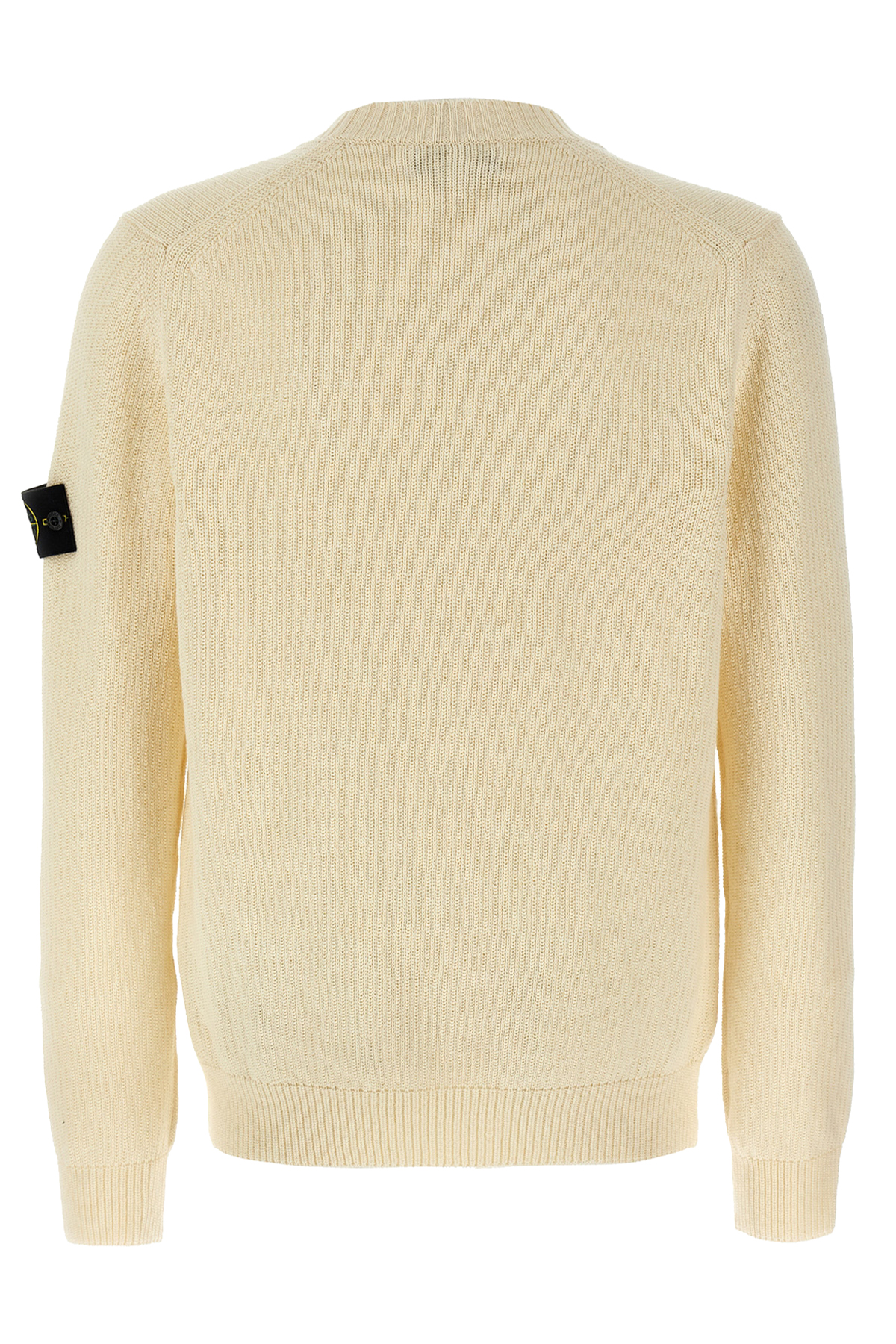 Knitted cotton sweater, crew neck, long cuffed sleeves and a logo badge.