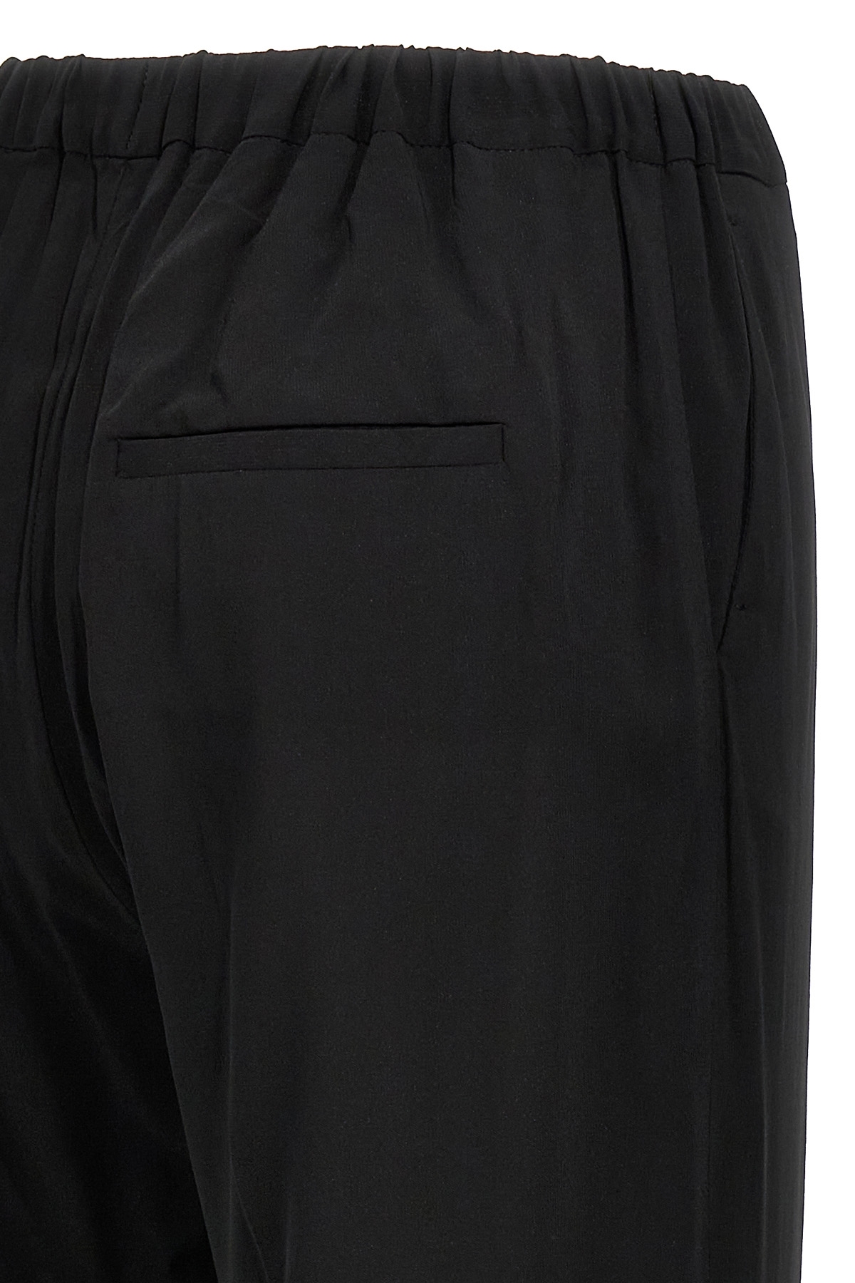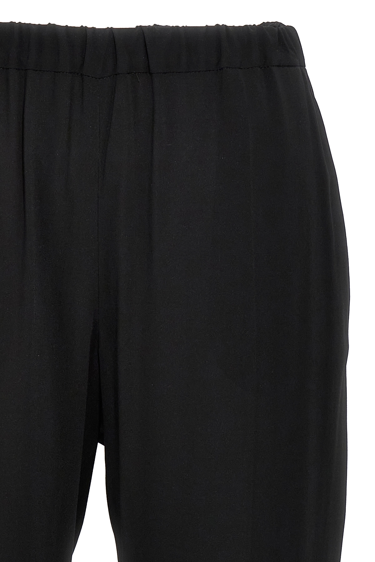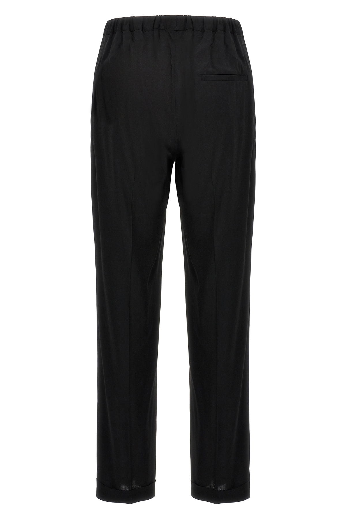Georgette crepe pants, turned-up hem, elastic waistband, side pockets.