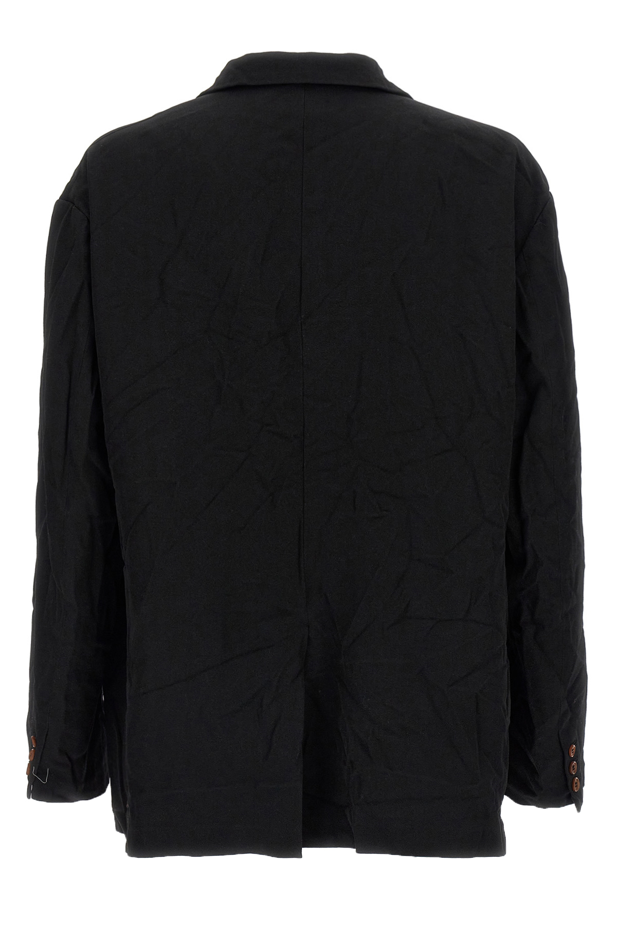 Deconstructed blazer in wrinkled fabric, single-breasted model with button closure, pockets, mirror lapels, long sleeves with dropped shoulders, back split.