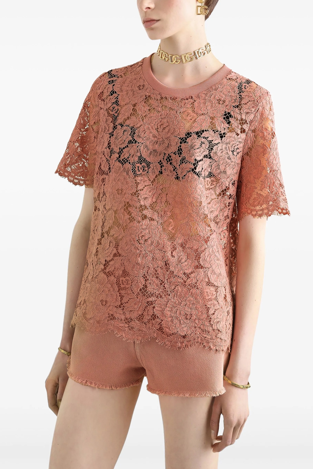 Lace T-shirt I see I don't see, crew neck, short sleeves.