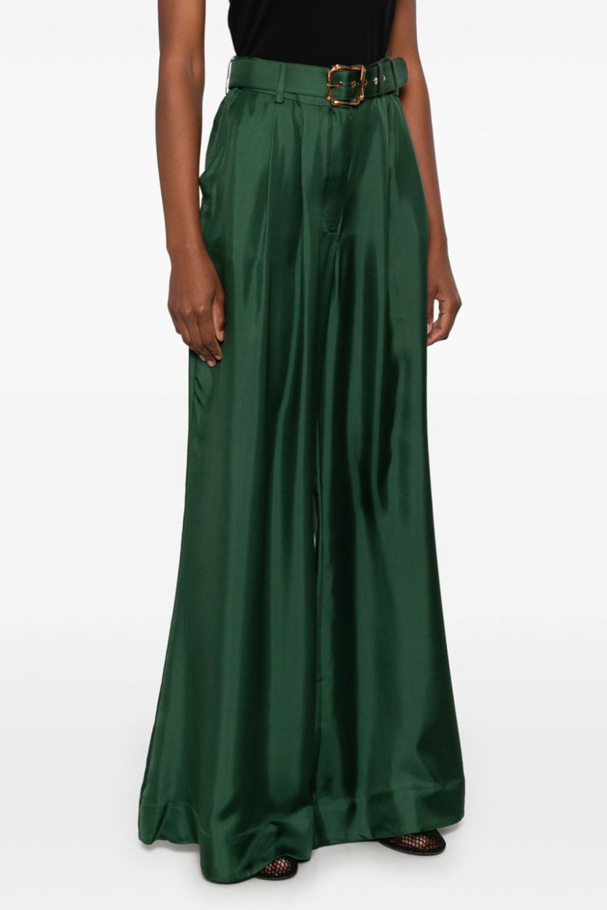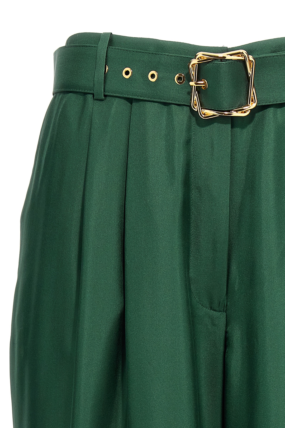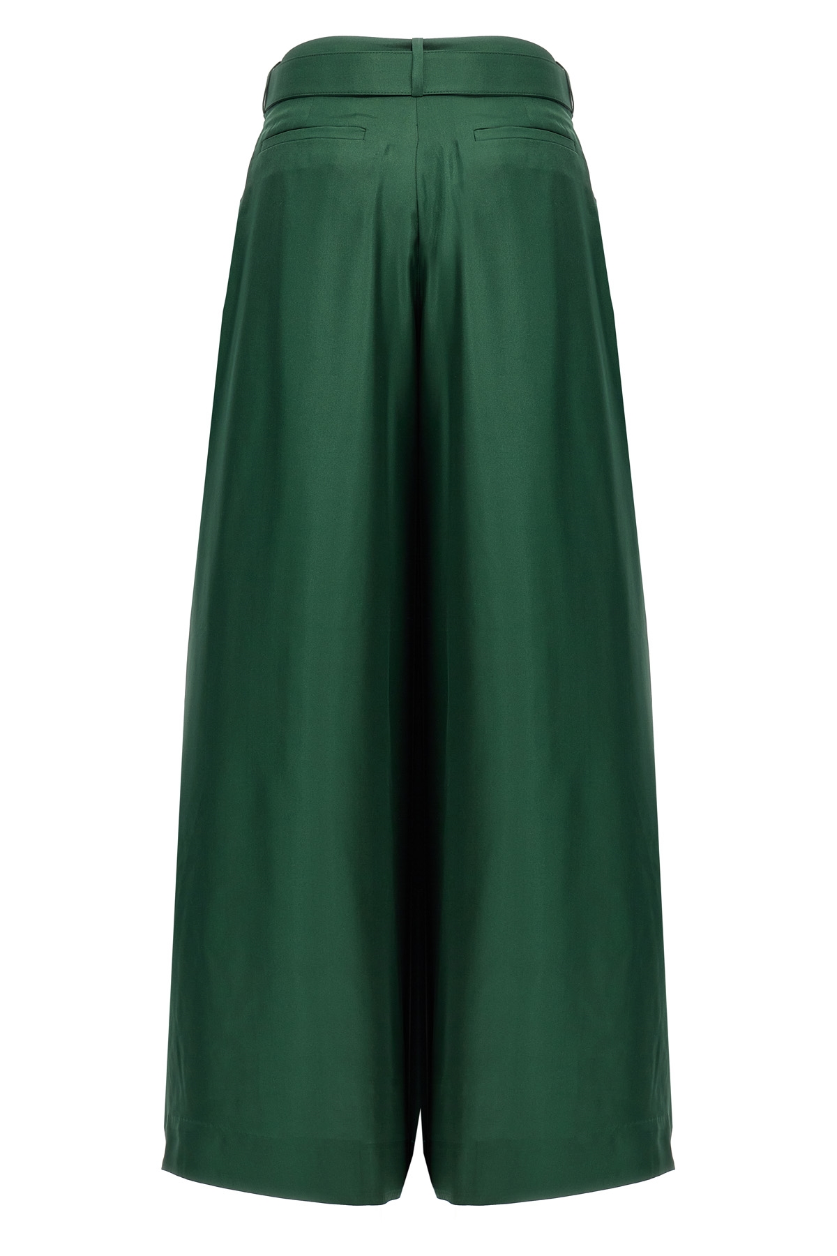 'Pavilion' silk pants, hook and button zip closure, matching belt at the waist, pockets, wide leg.