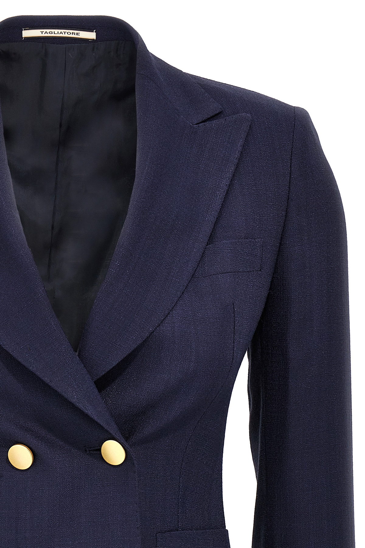 'Coral' double-breasted blazer in viscose blend with button closure, peak lapels, pockets, padded shoulders, long sleeves, back vent.
