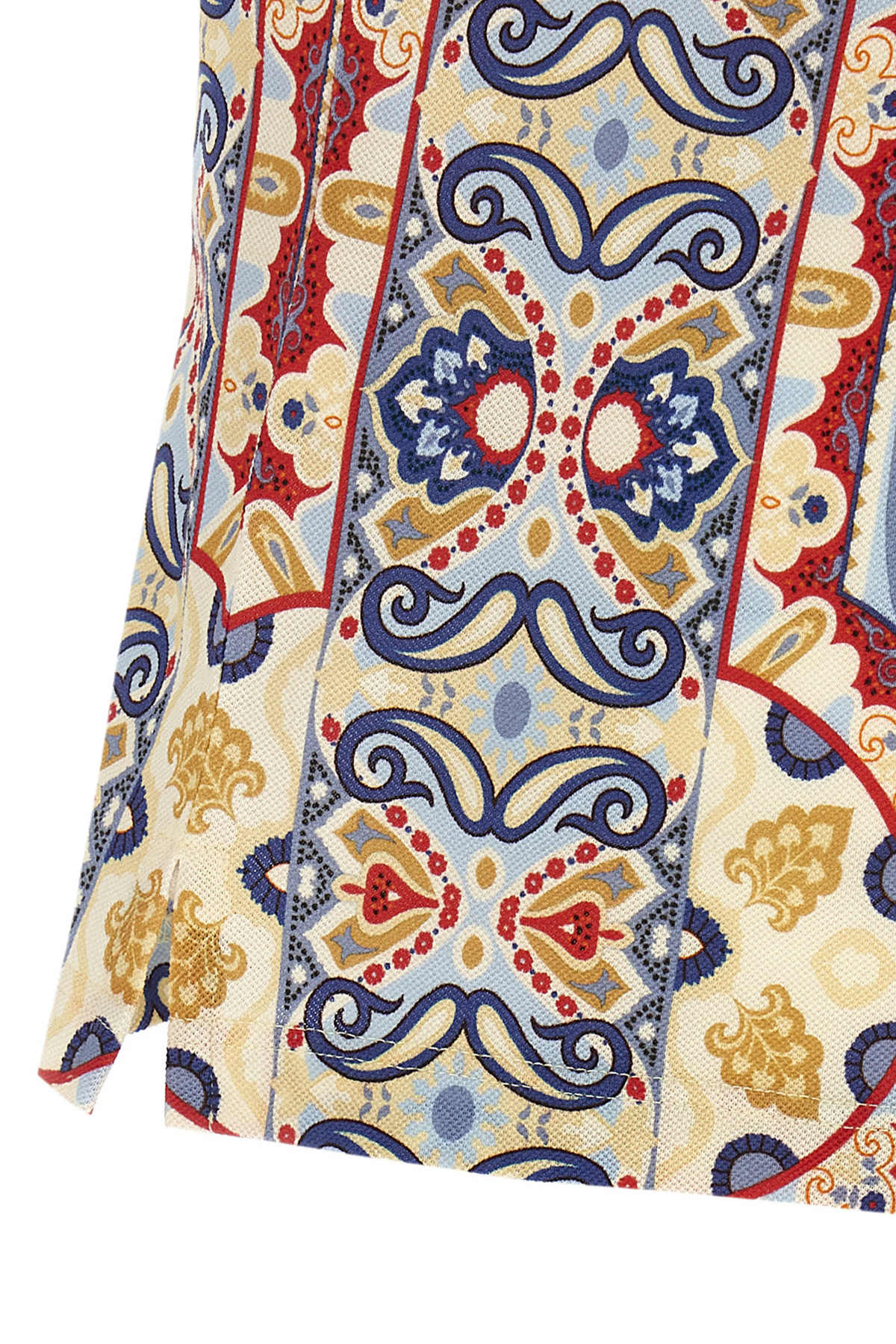 Pique cotton polo shirt with floral Paisley print and solid color details, collar and buttons, short sleeves and side vents.