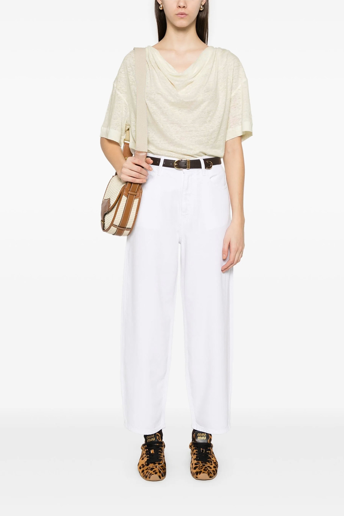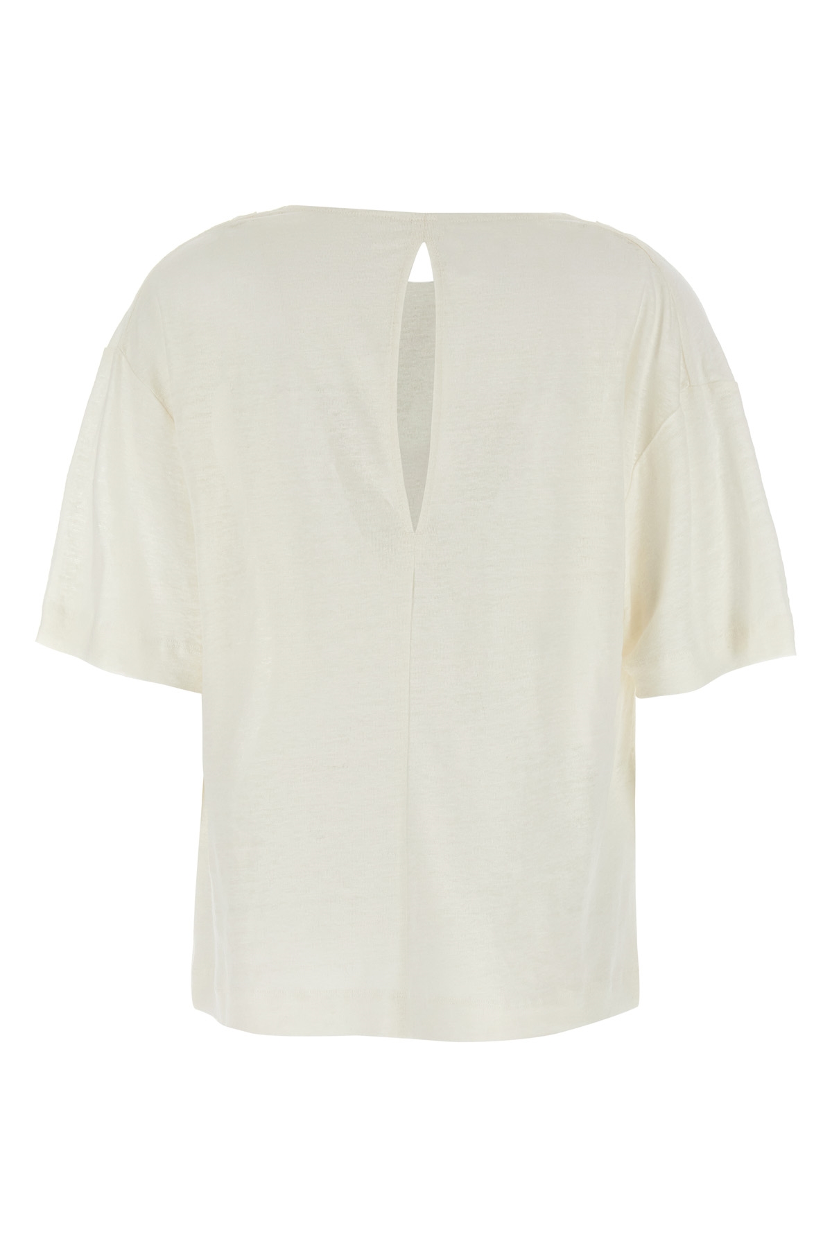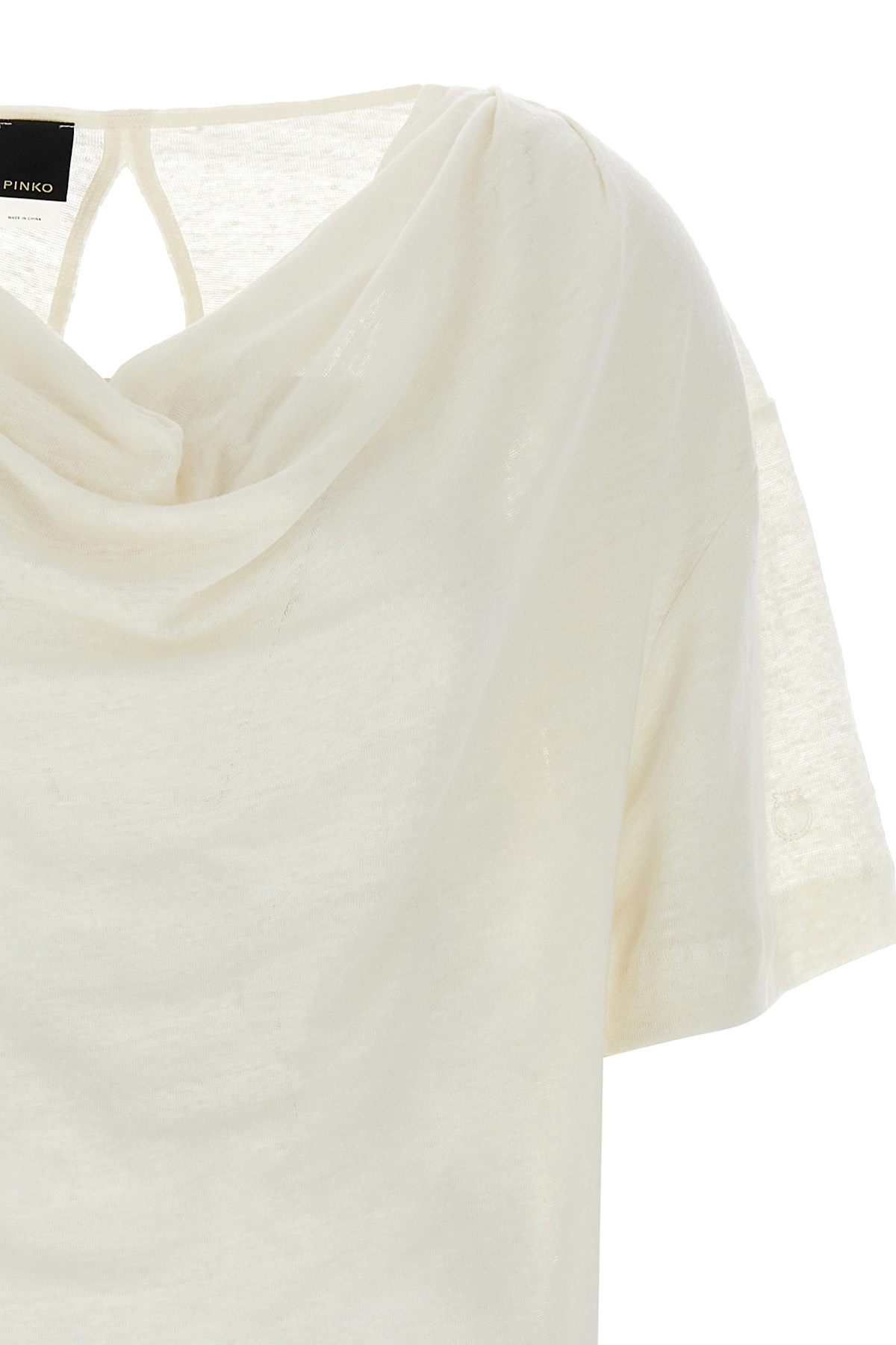 'Mambo' linen jersey t-shirt with shawl collar and teardrop back neckline.