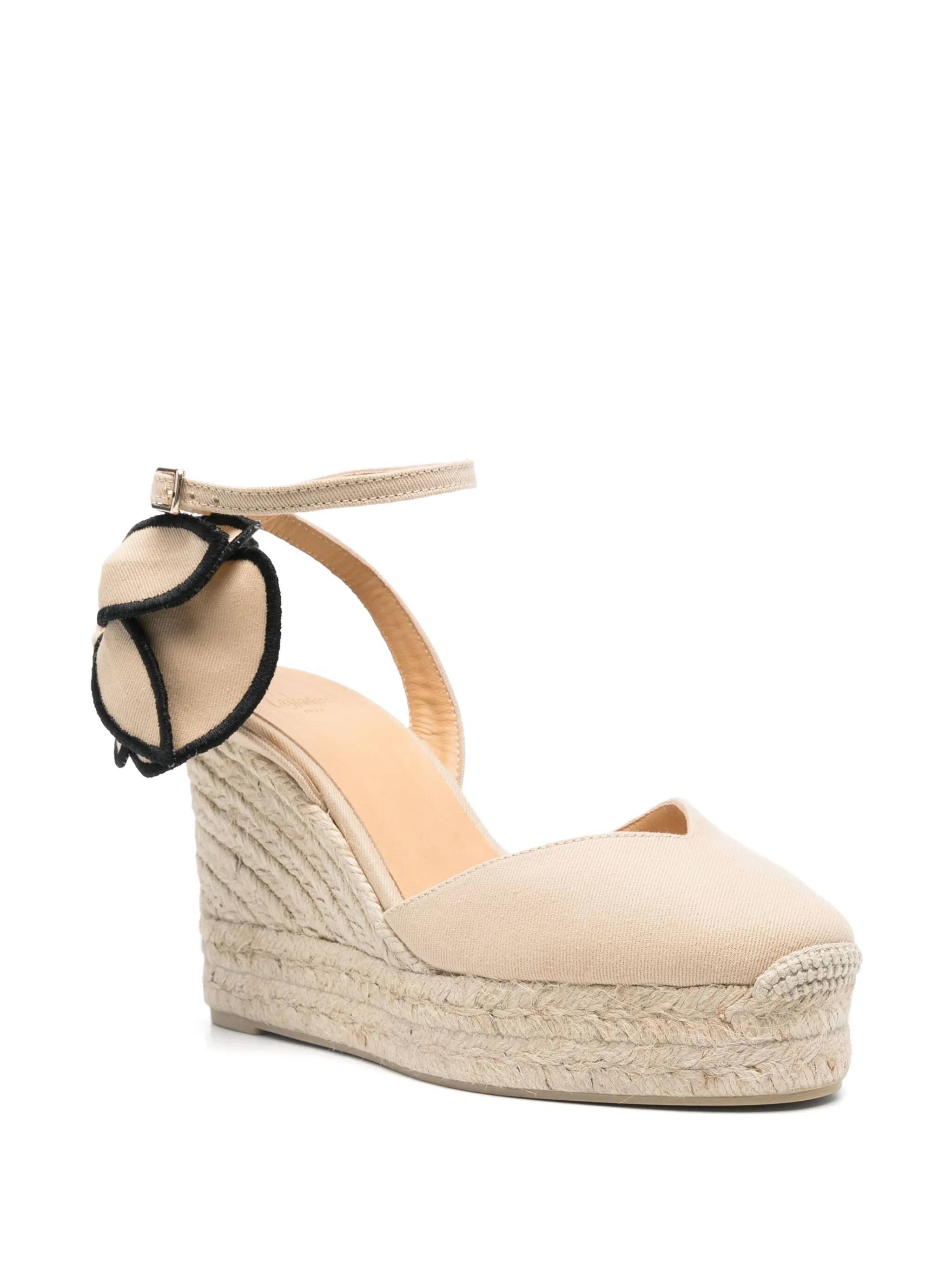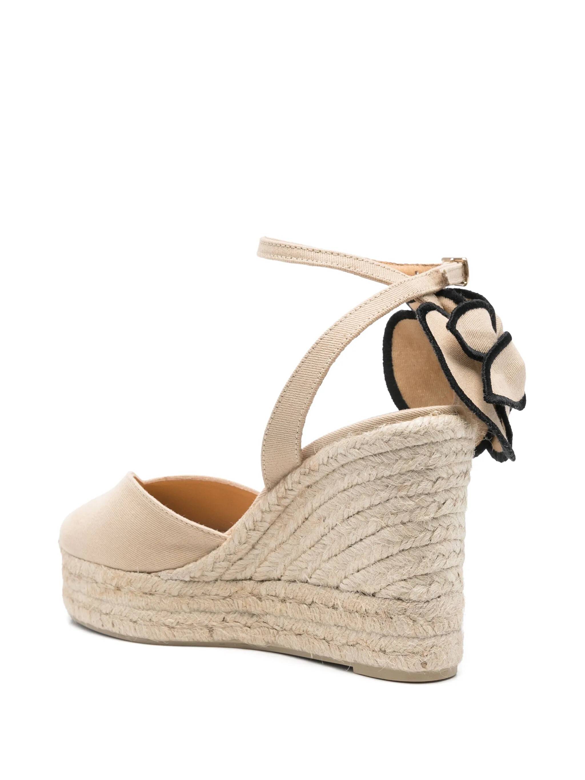 archive beige bucklefastening ankle strap high wedge heel floral applique braided raffia sole