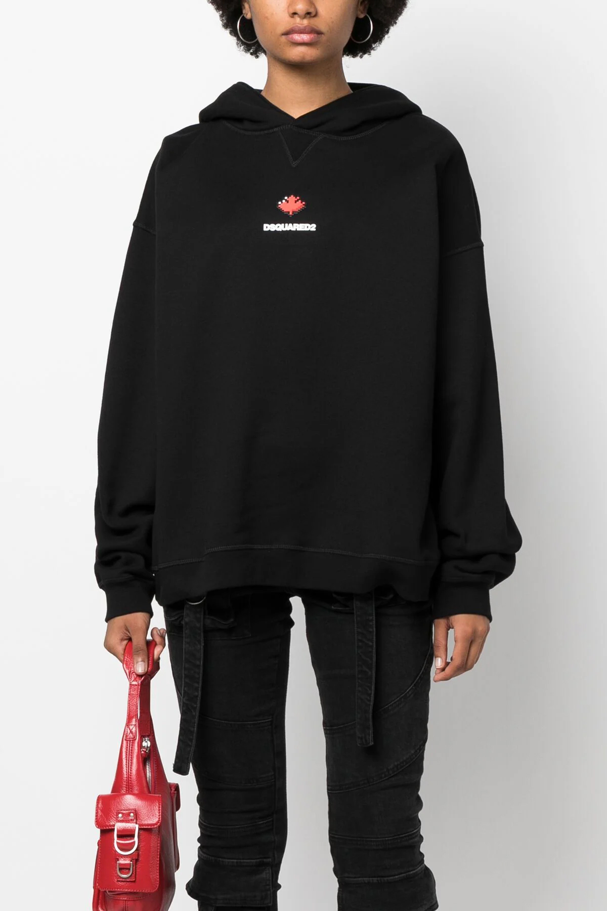Herca' cotton hoodie with front print, long cuffed sleeves.