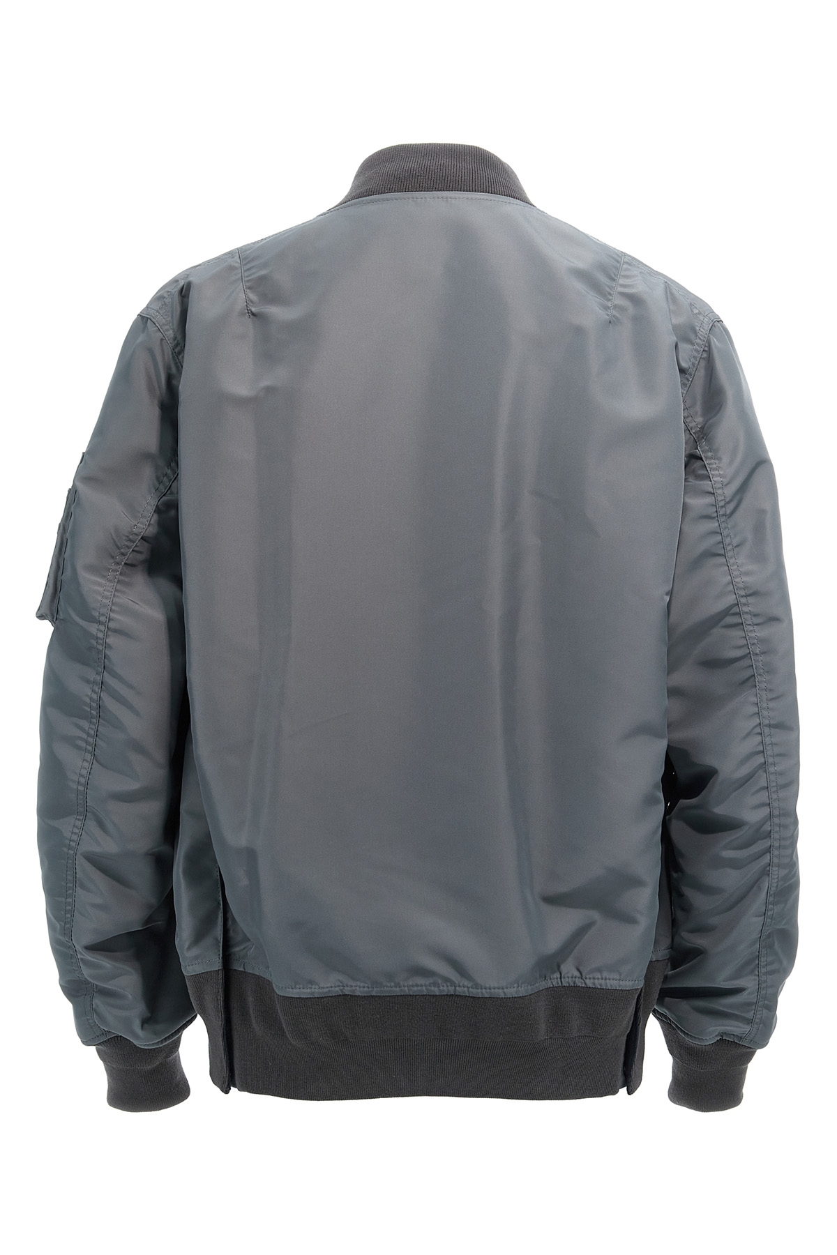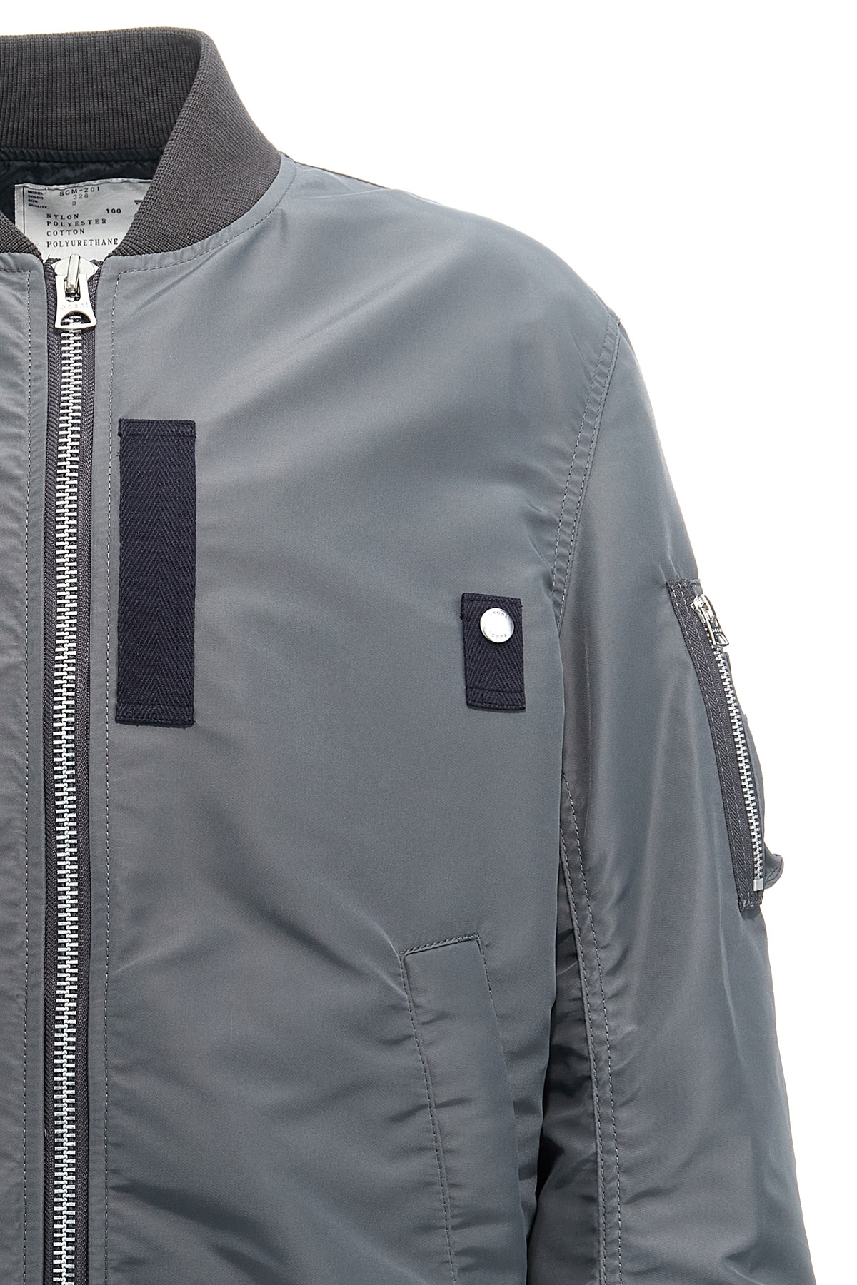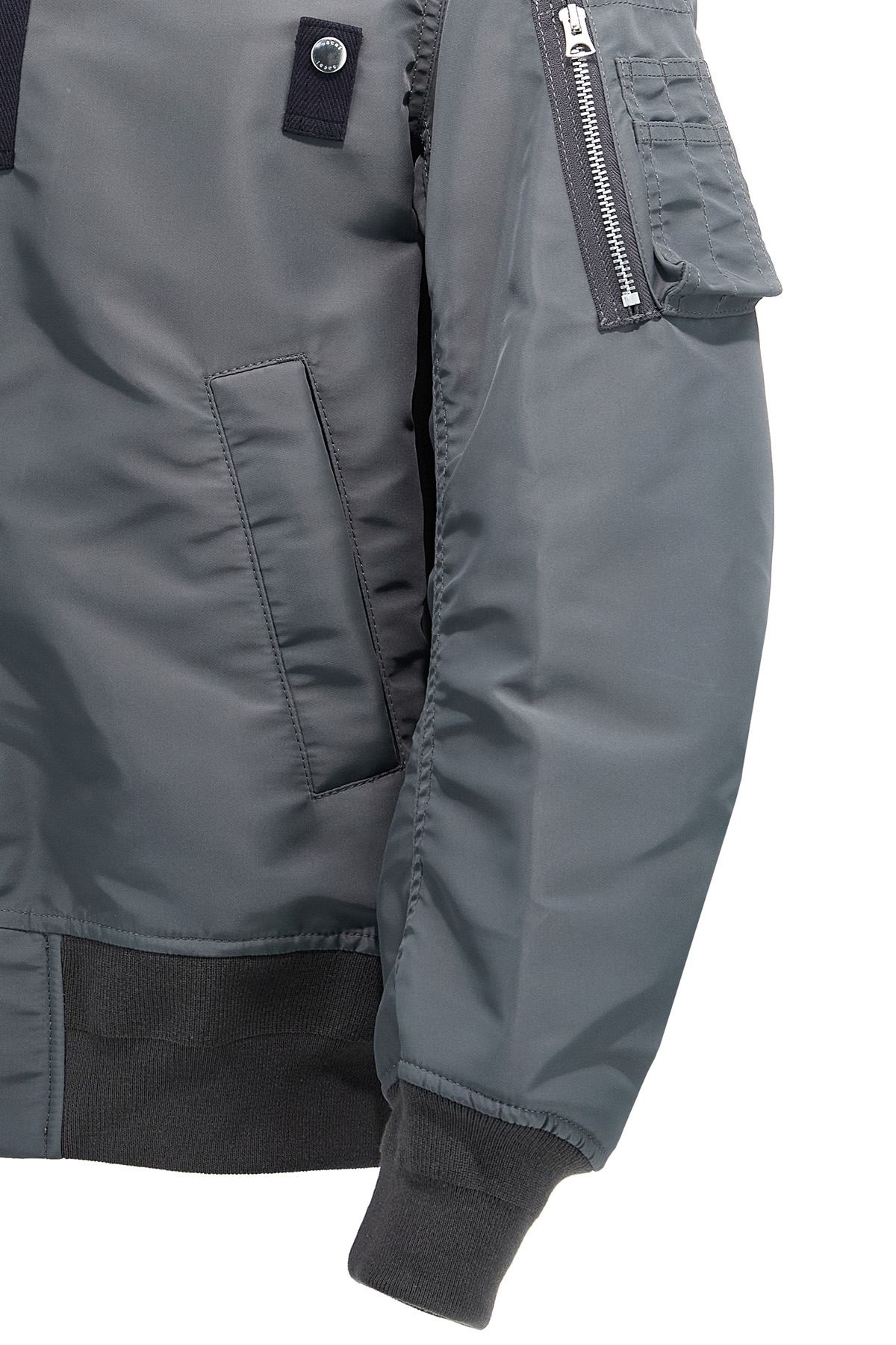 Nylon bomber jacket with zip closure, pockets, long cuffed sleeves.